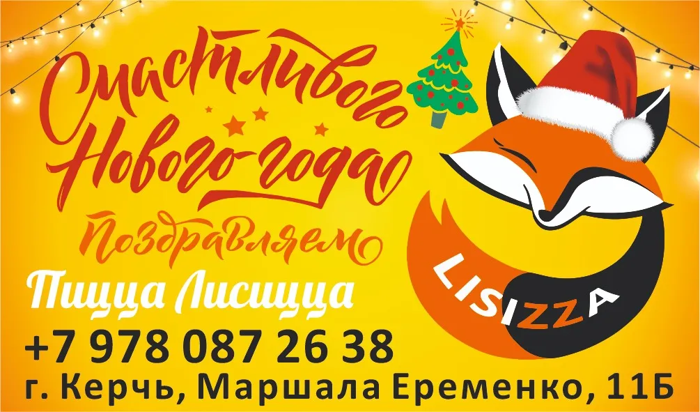 С наступающим Новым годом спешит поздравить вас любимая пиццерия «Лисицца»! Пусть этот праздник будет таким же ярким, ароматным и аппетитным, каким мы делаем нашу пиццу!