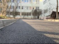 Предварительно был отфрезерован старый асфальт, отсыпано основание, поднят уровень тротуаров и установлены новые бордюры. Теперь здание не будут подтапливать дождевые стоки, которые ранее скапливались на заднем дворе, образовывая лужи и грязь.