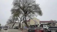 В Керчи на улице Самойленко производят обрезку деревьев. Место работ, около пешеходного перехода, оградили сигнальной лентой, - передает КерчьФМ