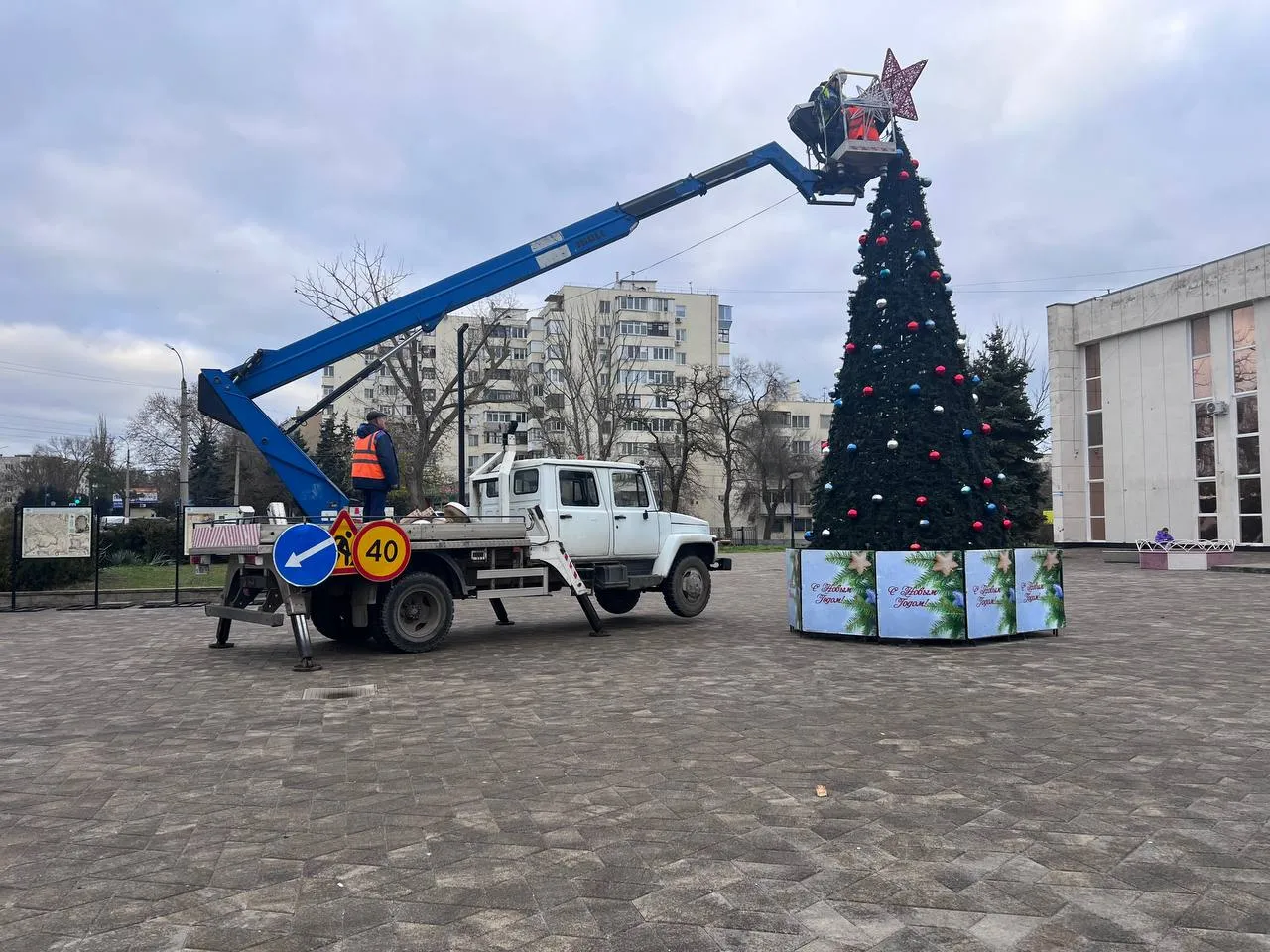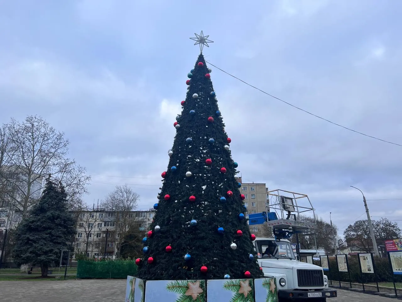 Специалисты предприятия «Горсвет-Керчь» по поручению главы администрации Керчи заменили макушку на ёлке у ДК «Корабел».