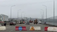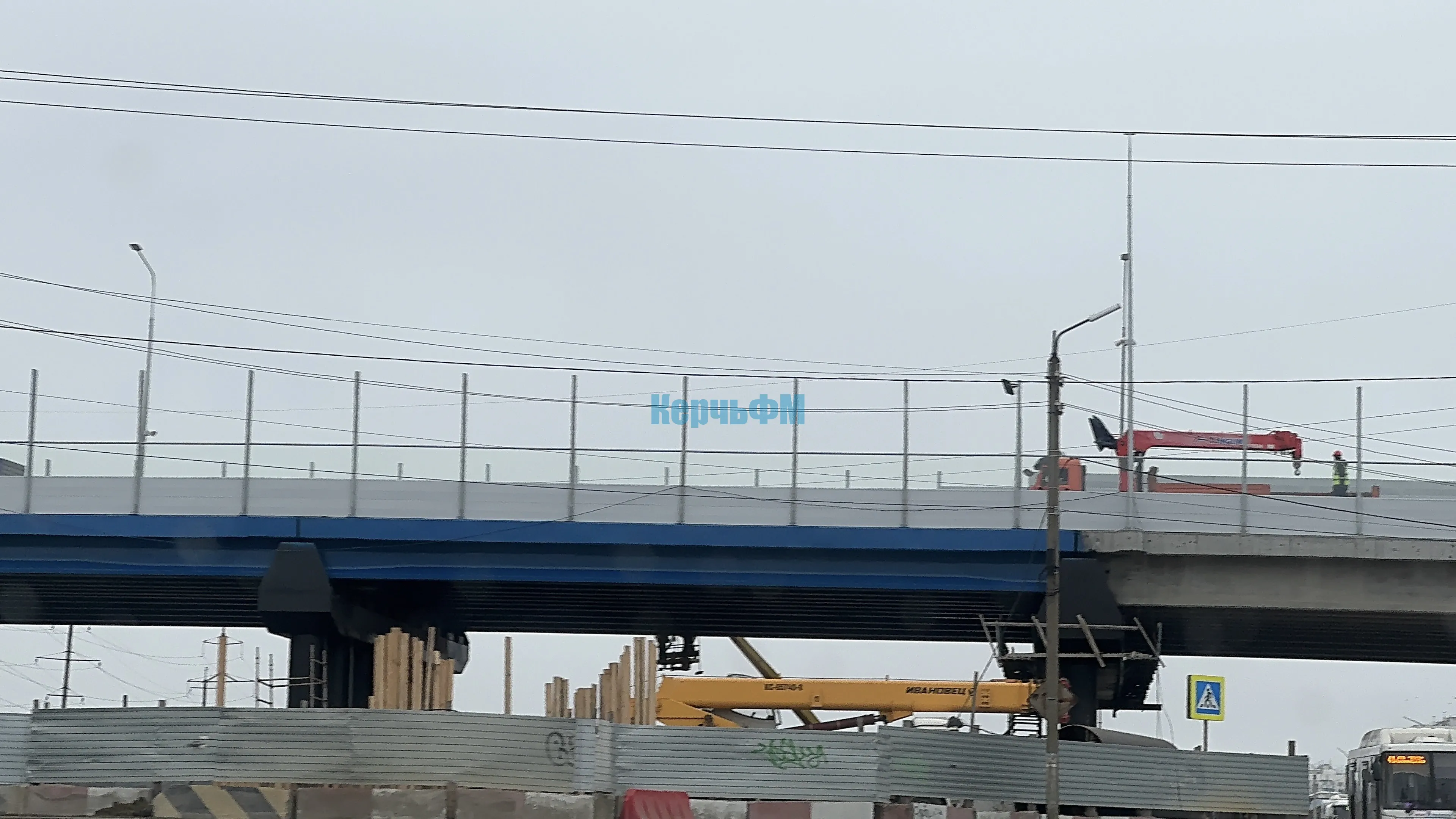На путепроводе на Будённого в Керчи идут работы: часть конструкции покрасили в синий цвет