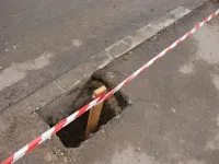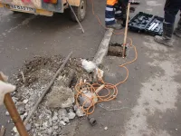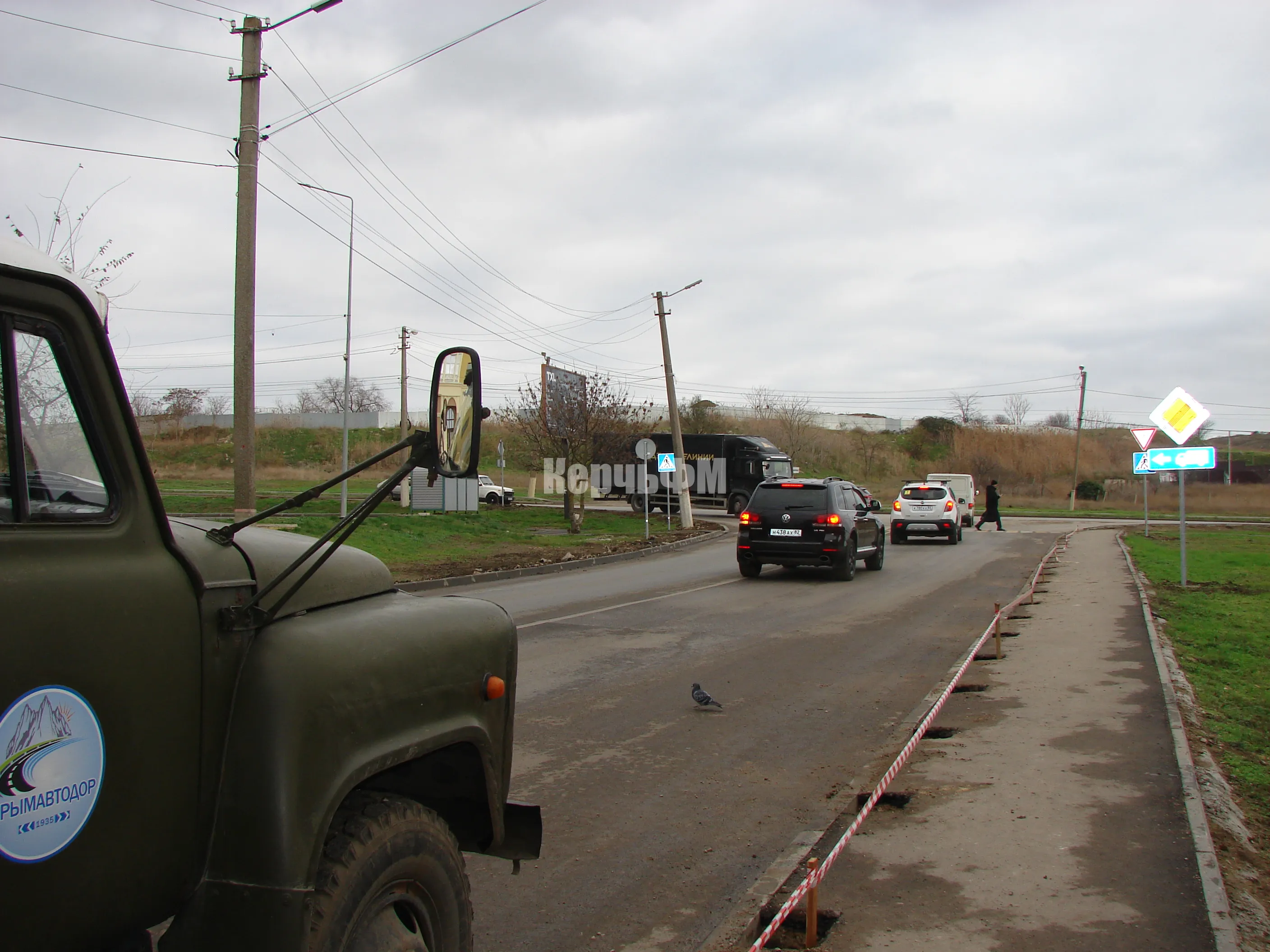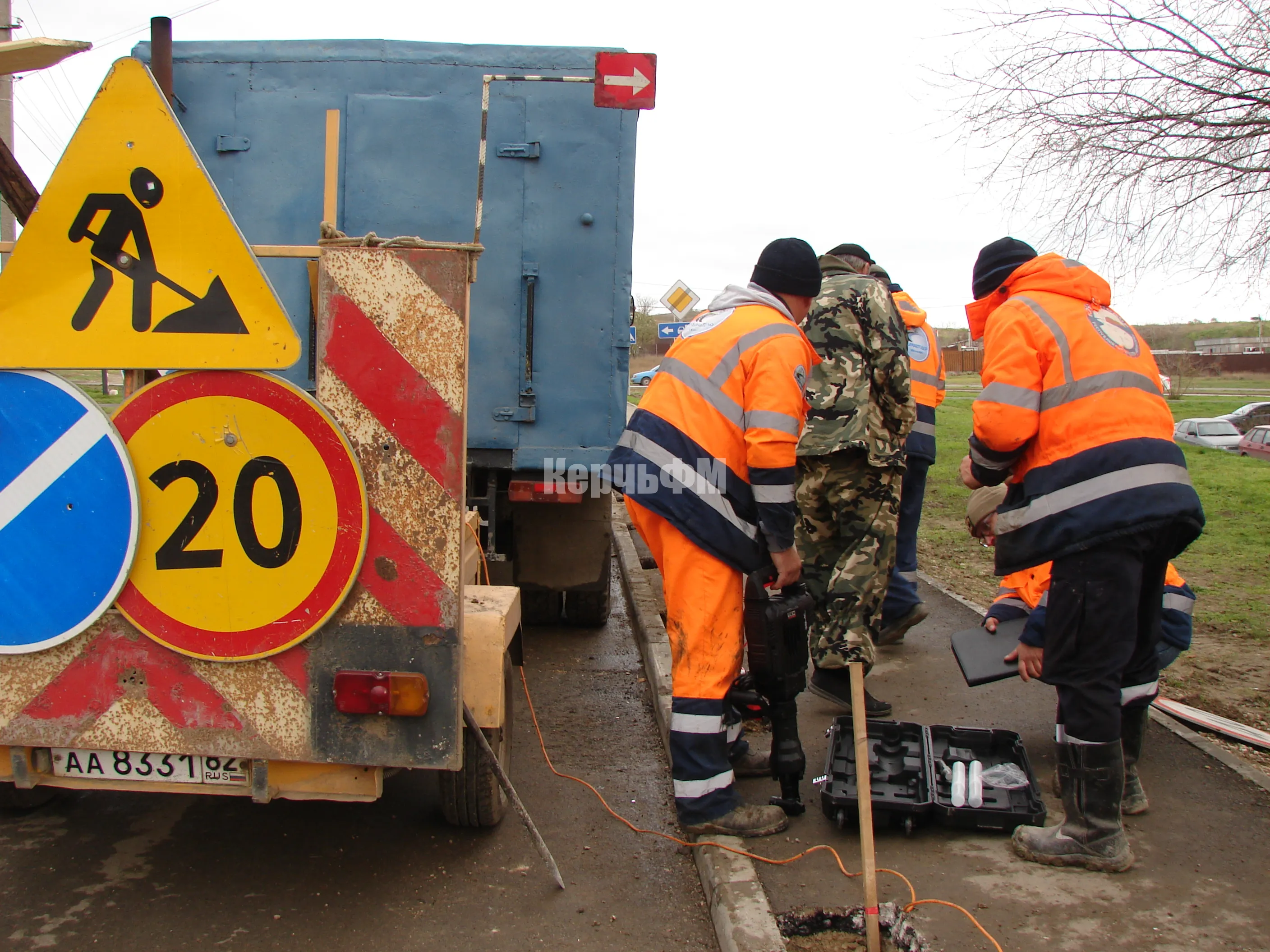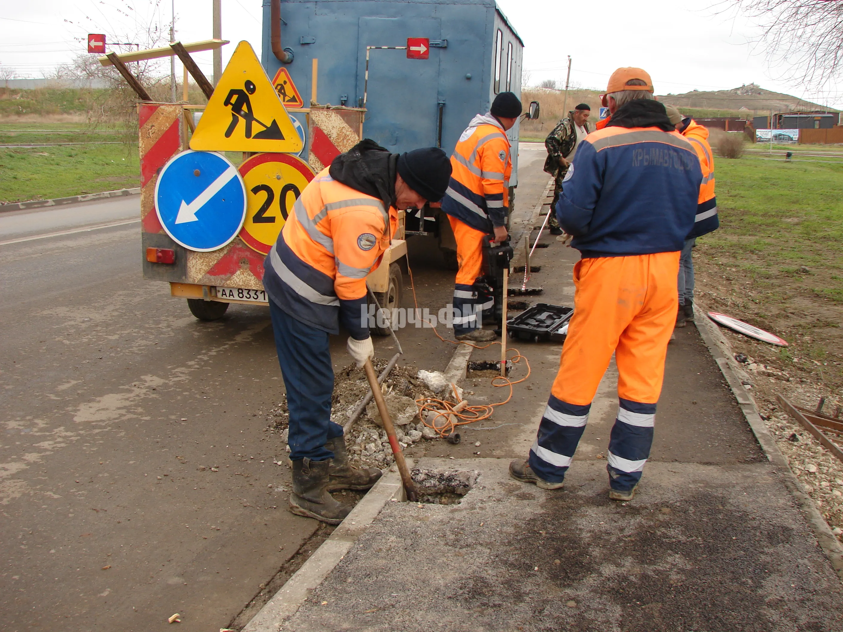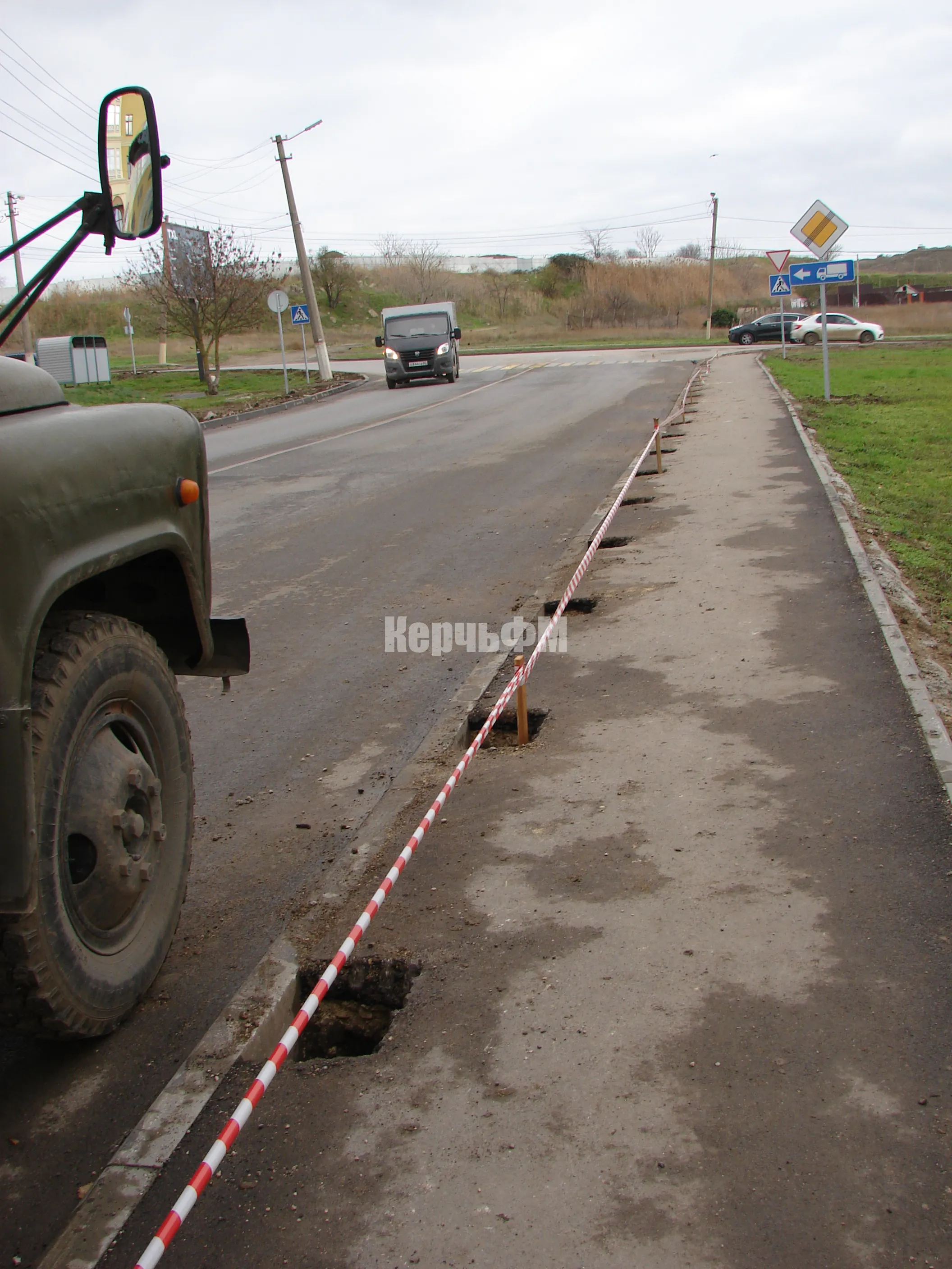 Сегодня специалисты керченского филиала предприятия "Крымавтодор" приступили к подготовке установки ограждений у дороги по улице Блюхера.