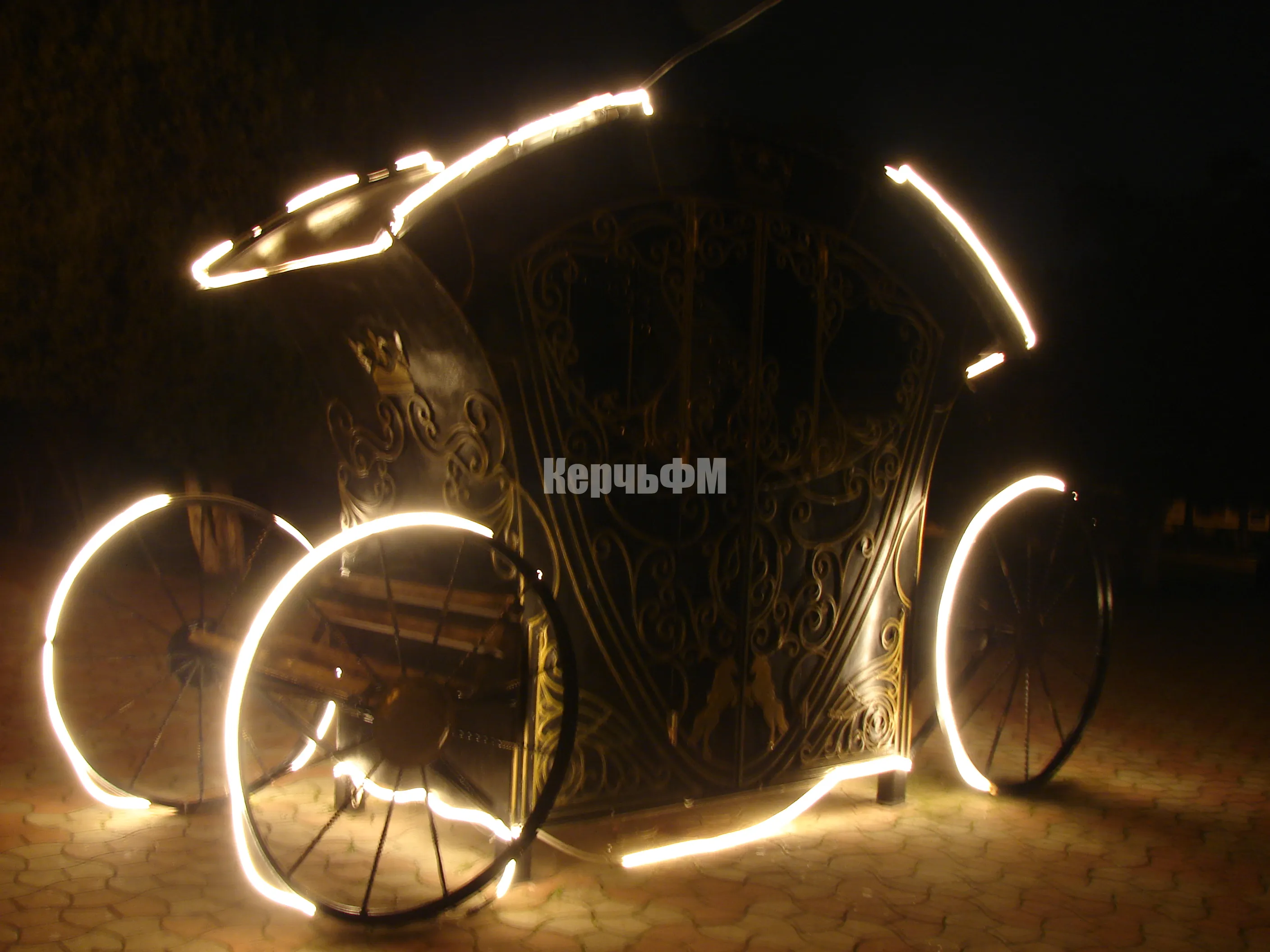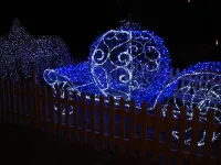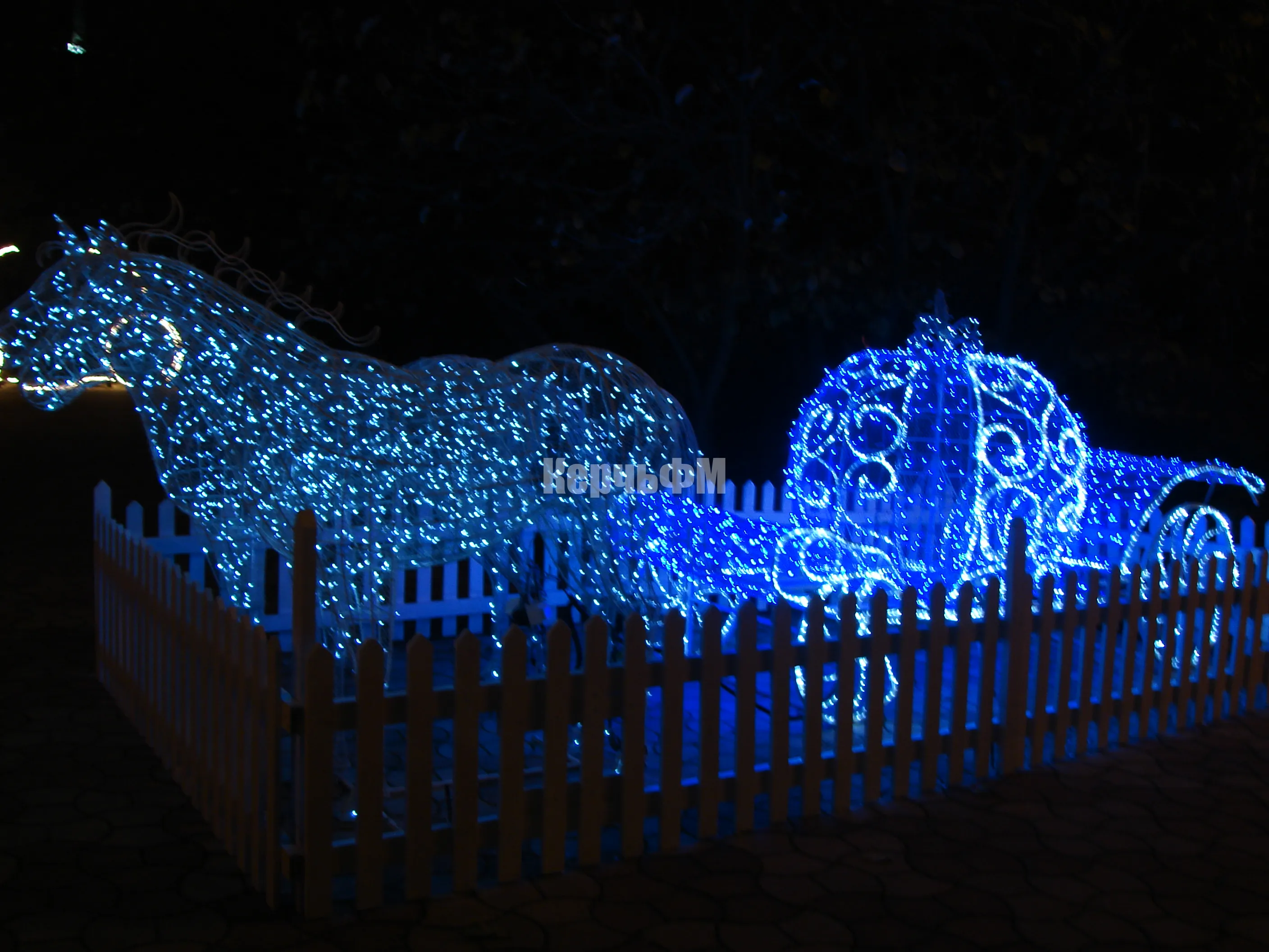 Светящаяся карета с оленями в упряжке также уже стала традицией в украшении центральной площади к новому году.