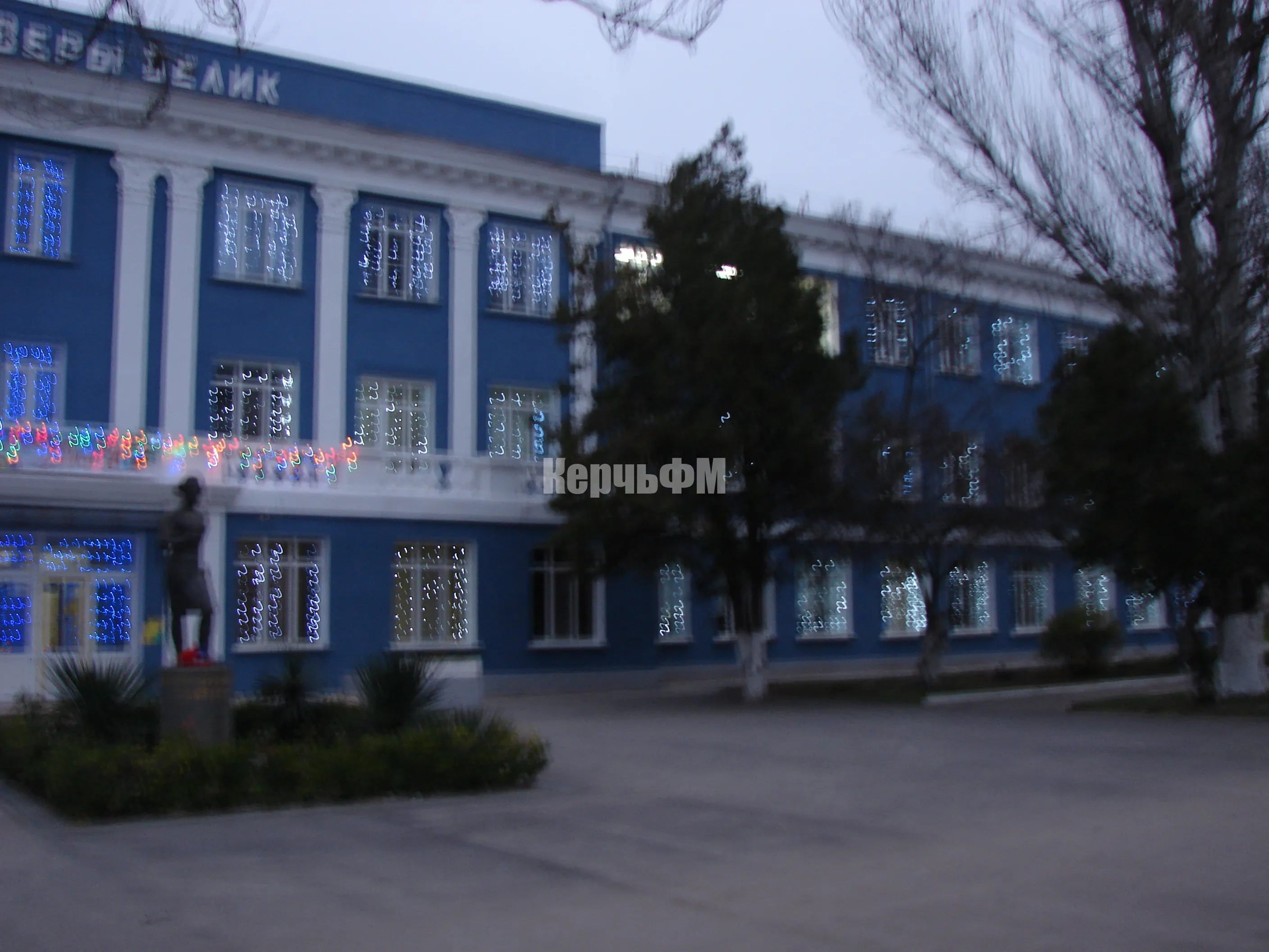На фасаде школы №17 переливаются уютными бегущими праздничными огоньками все окна, а также центральный вход.