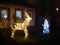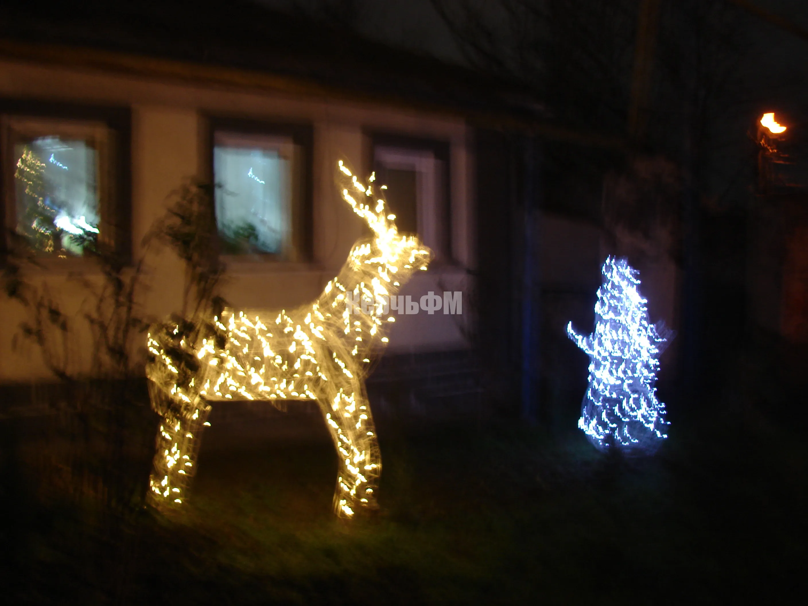 У одного из домов частного сектора по улице Желябова хозяин установил конструкции оленя и снеговика, и обозначил их силуэты новогодними гирляндами.