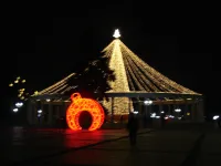 Главную елку здесь и шатер над ней зажгли в день Святого Николая, как и инсталляции с фотозоной, переливающейся красными огнями, и другую, с традиционными цифрами наступающего года.