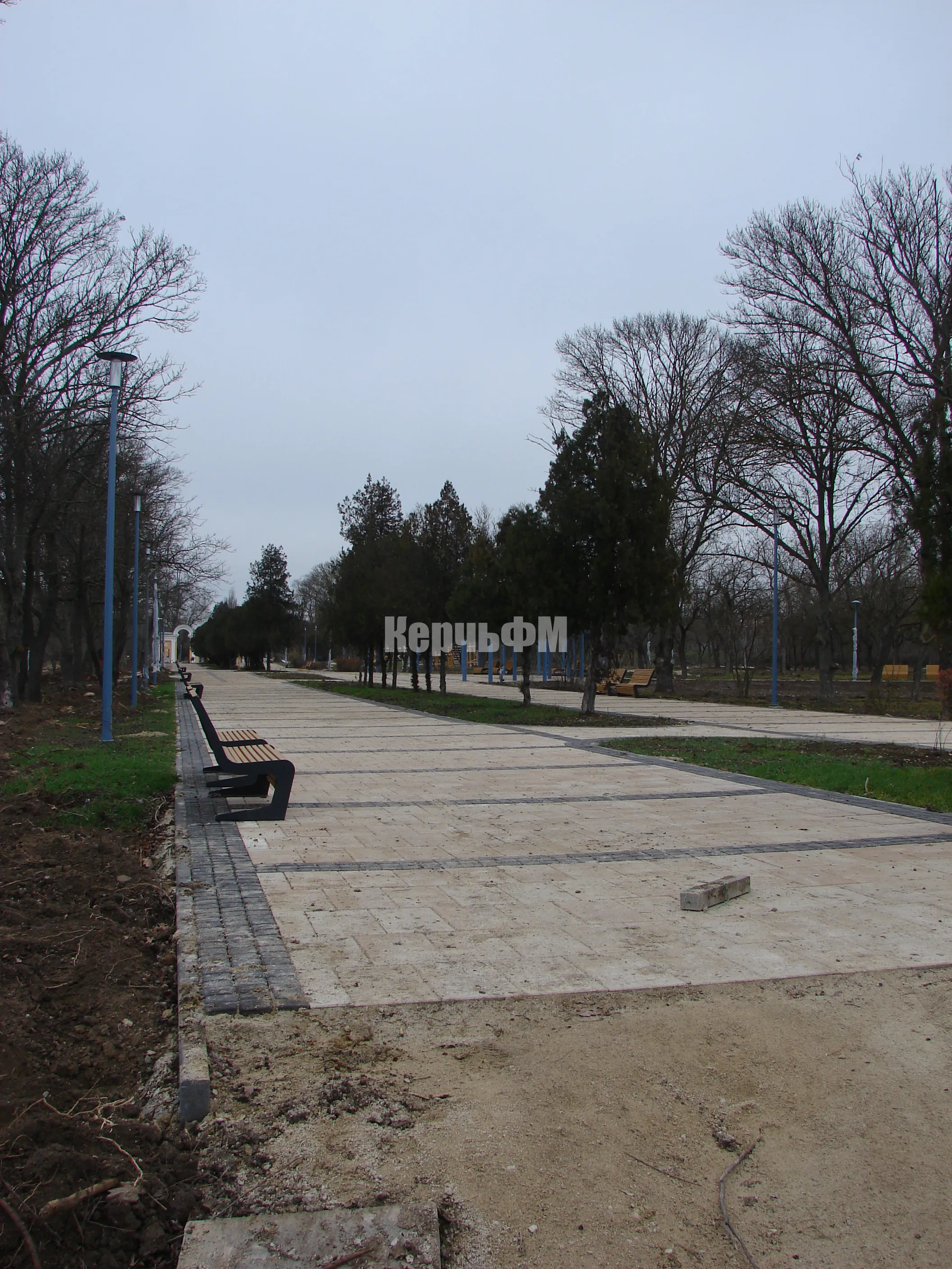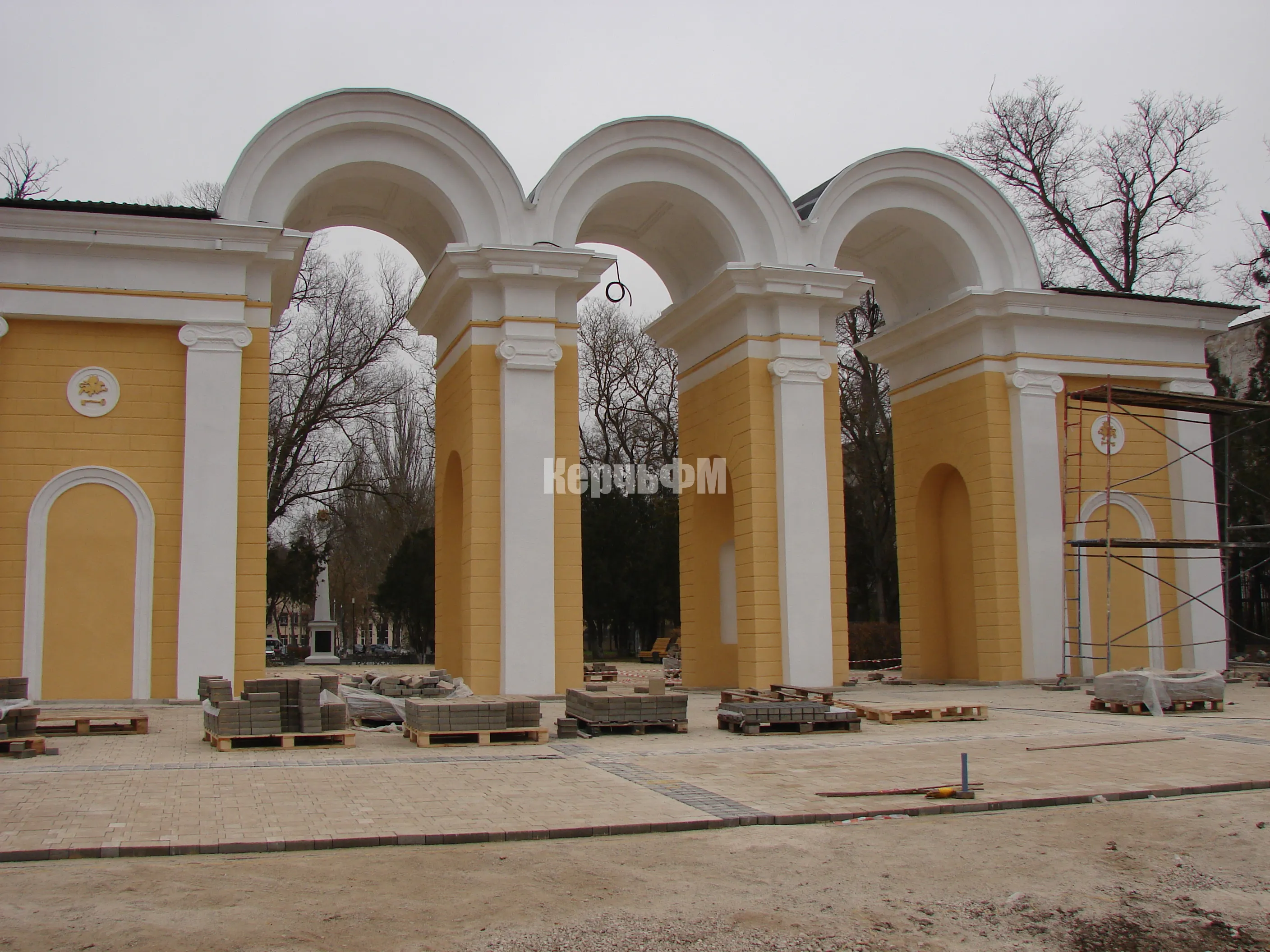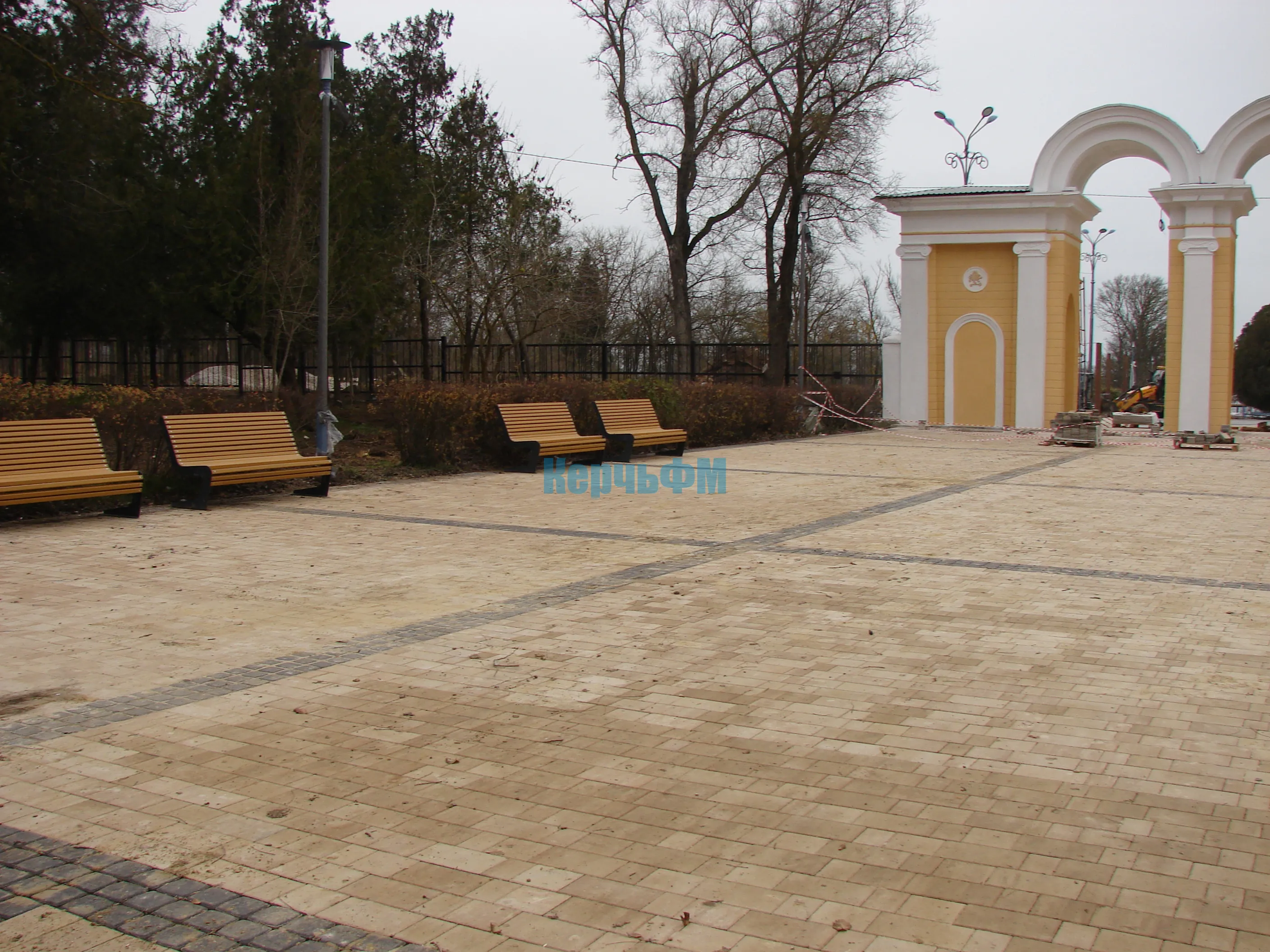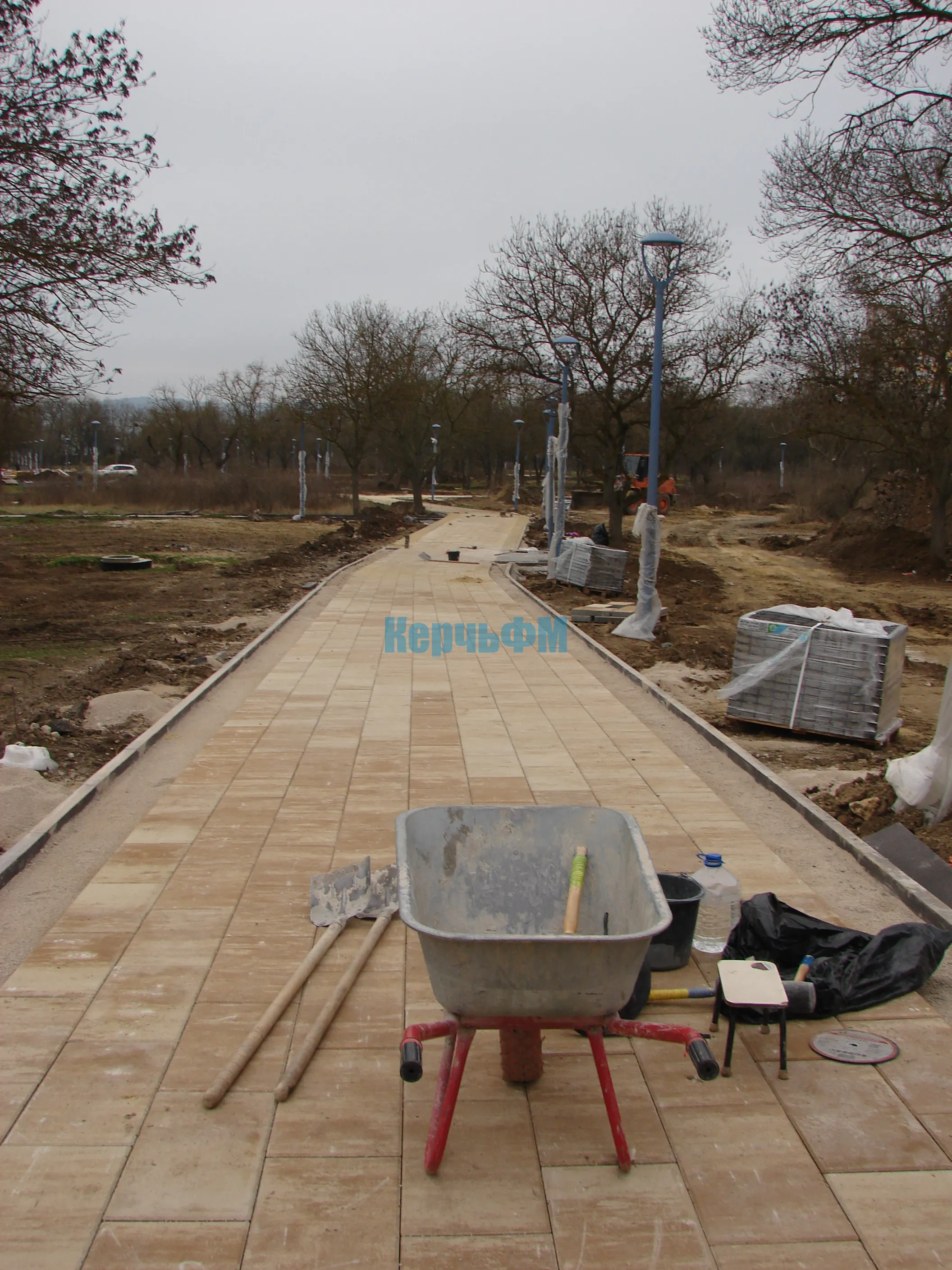 В конце главной аллеи монтируется сцена, а также над морем ведется установка бетонных элементов ограждения в виде фигурных столбиков, передает КерчьФМ.