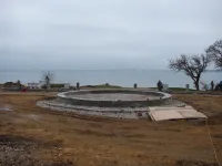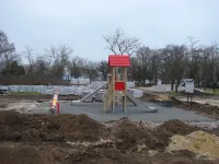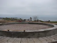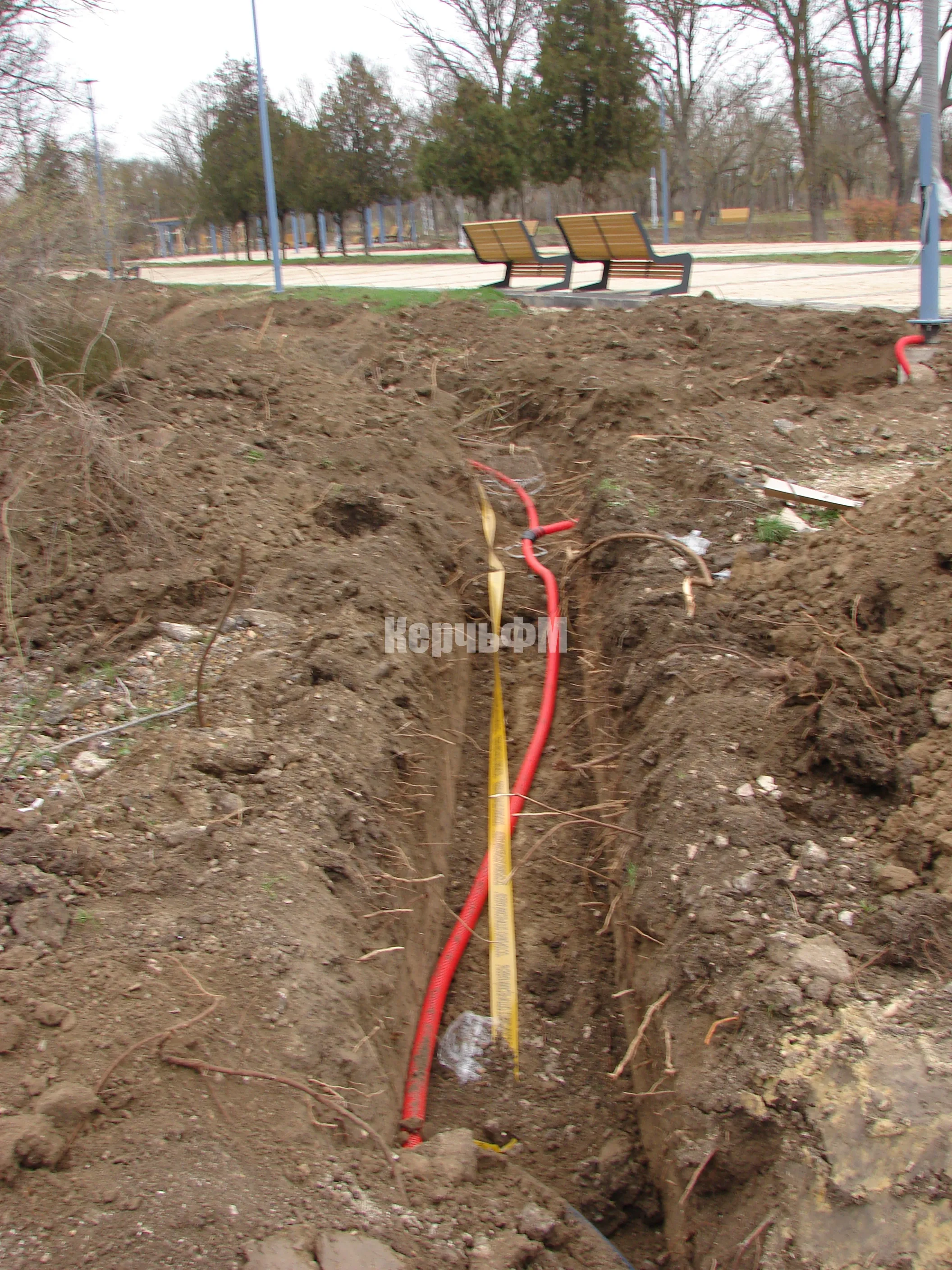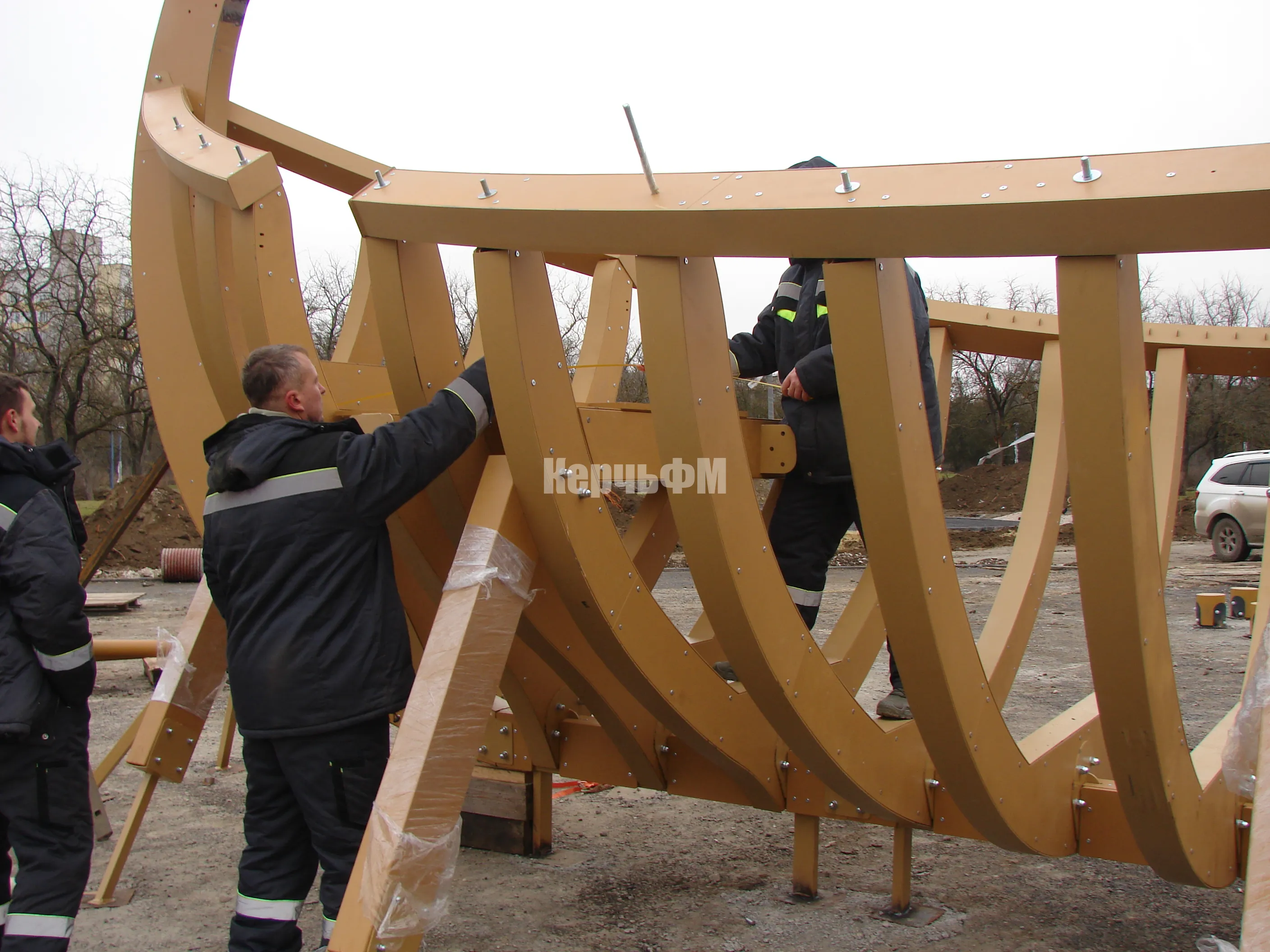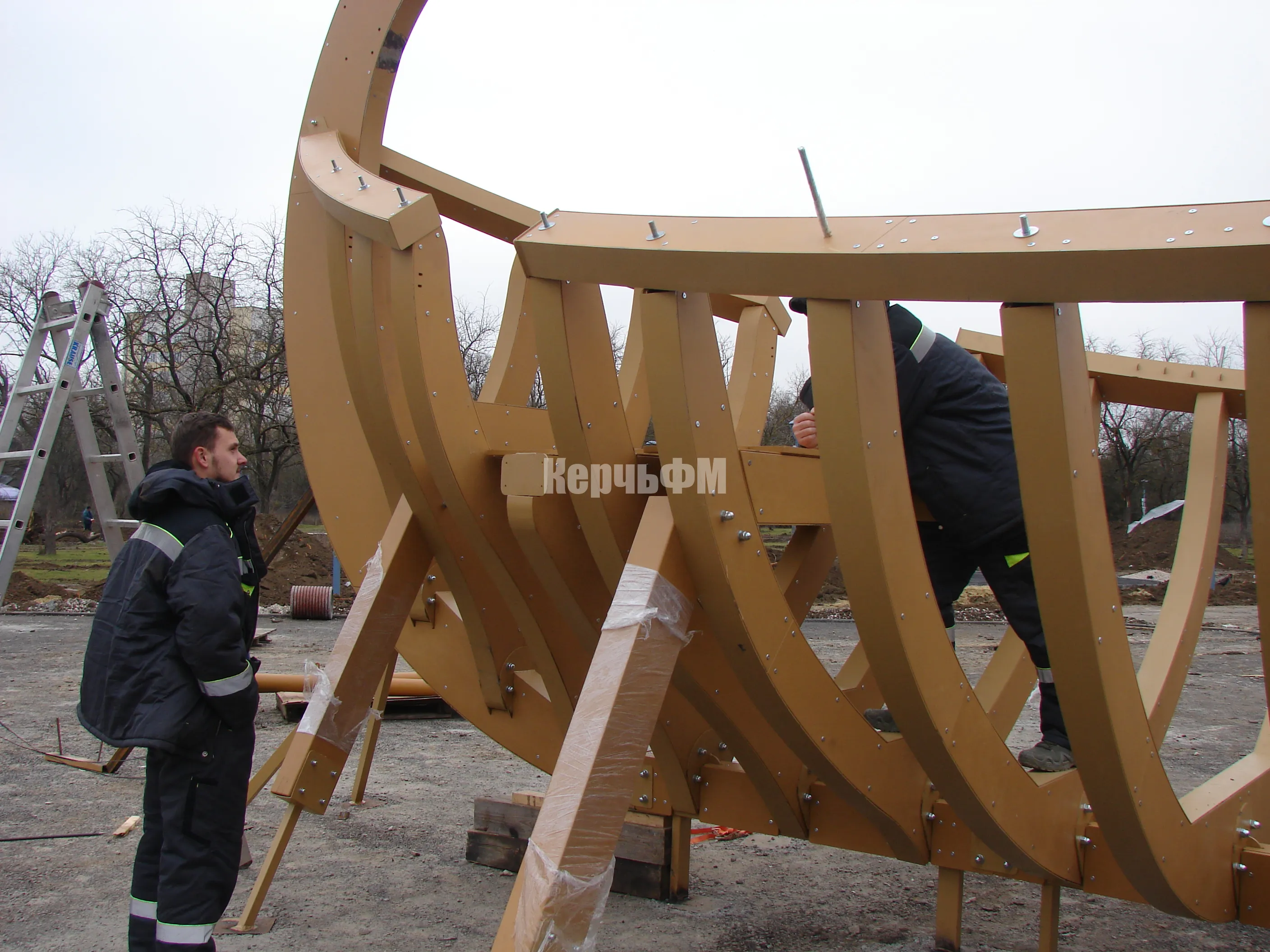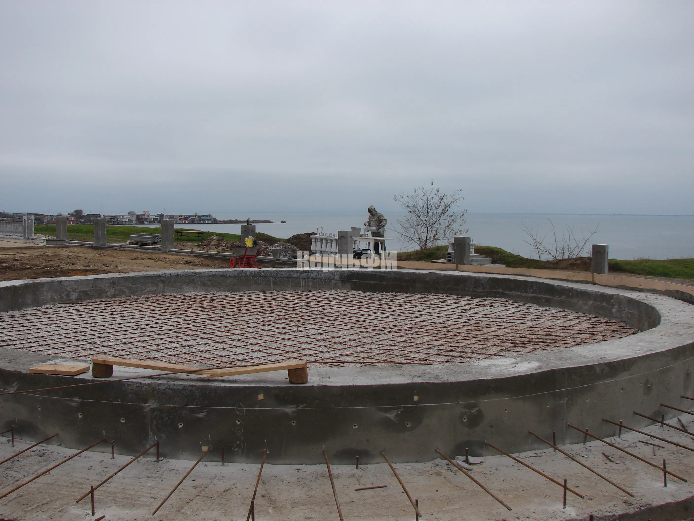 В конце главной аллеи монтируется сцена, а также над морем ведется установка бетонных элементов ограждения в виде фигурных столбиков, передает КерчьФМ.