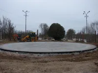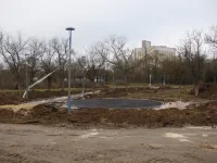 Впереди у строителей еще немало работы: необходимо завершить мощение боковых пешеходных дорожек и территории вокруг фонтана, расчистить территорию от строительного мусора, разровнять землю.