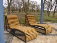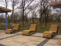 В ее середине под перголами появились необычные лавочки, на которых можно отдыхать полулежа.