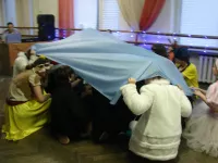 Они с удовольствием танцевали с Дедом Морозом, отгадывали загадки, играли в прятки и веселились.