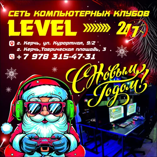 Команда компьютерного клуба «Левел» поздравляет вас с наступающим Новым годом! Пусть этот год принесёт вам множество ярких побед, новых достижений и незабываемых игровых моментов. Желаем вам крепкого здоровья, вдохновения и отличного настроения как в виртуальном, так и в реальном мире!