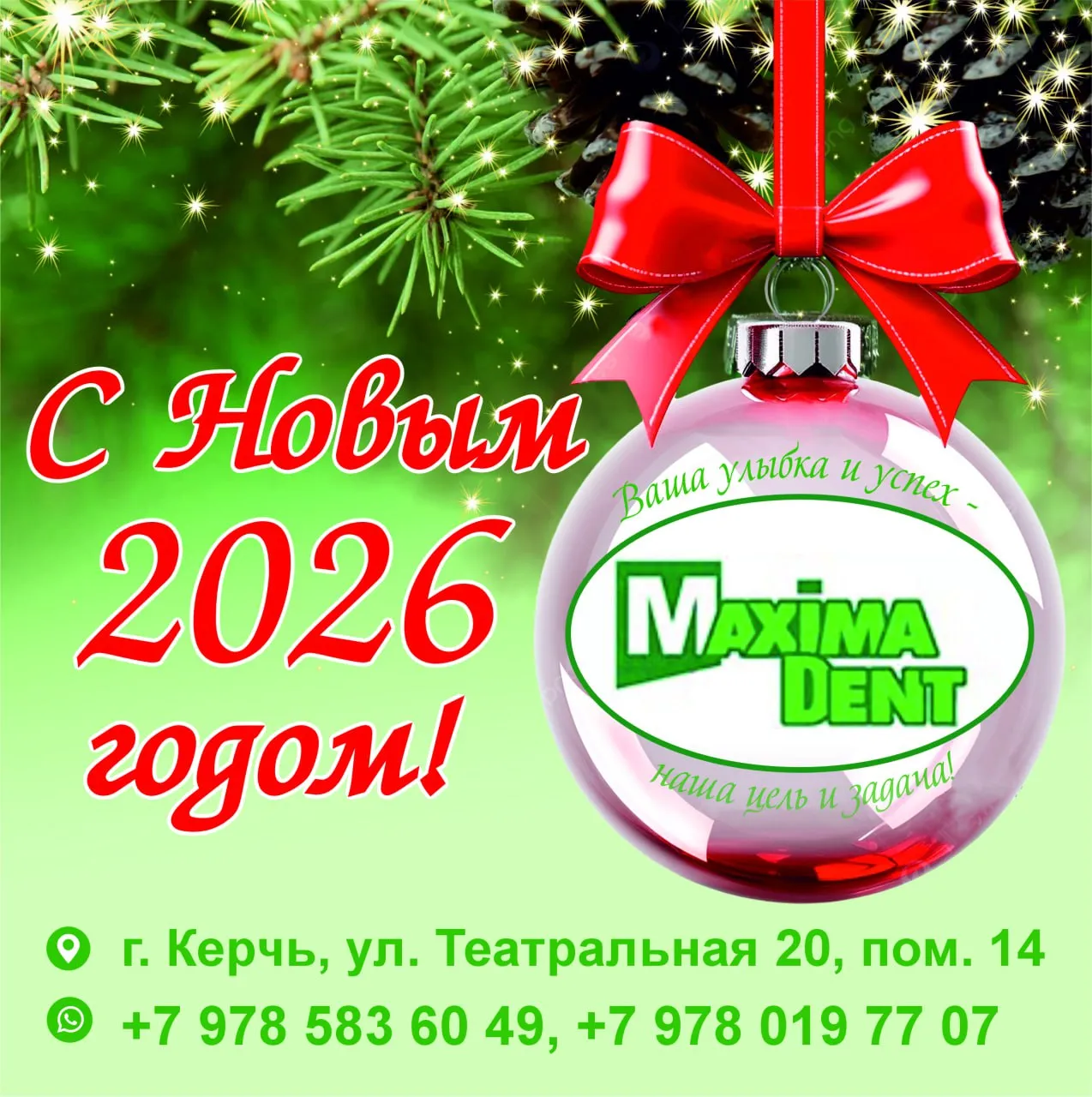 Стоматология «Максима Дент» поздравляет вас с Новым 2026 годом!