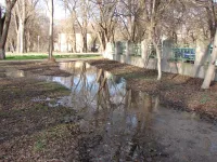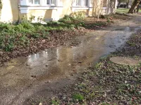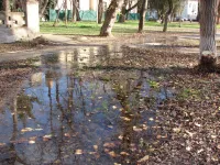 У станции скорой помощи, которая находится рядом с остановкой "Фабрика-Кухня", сегодня произошел порыв водовода.
