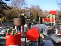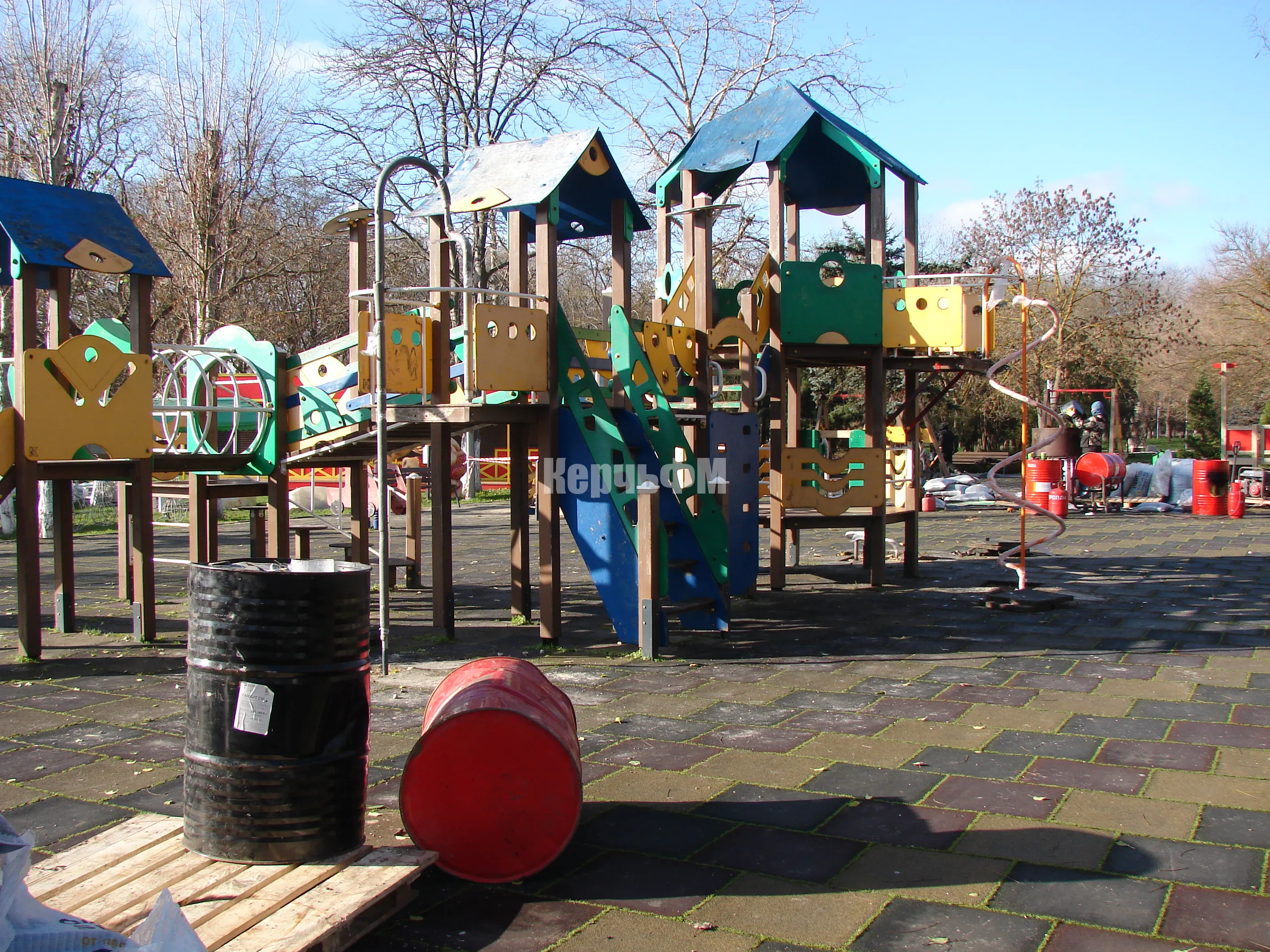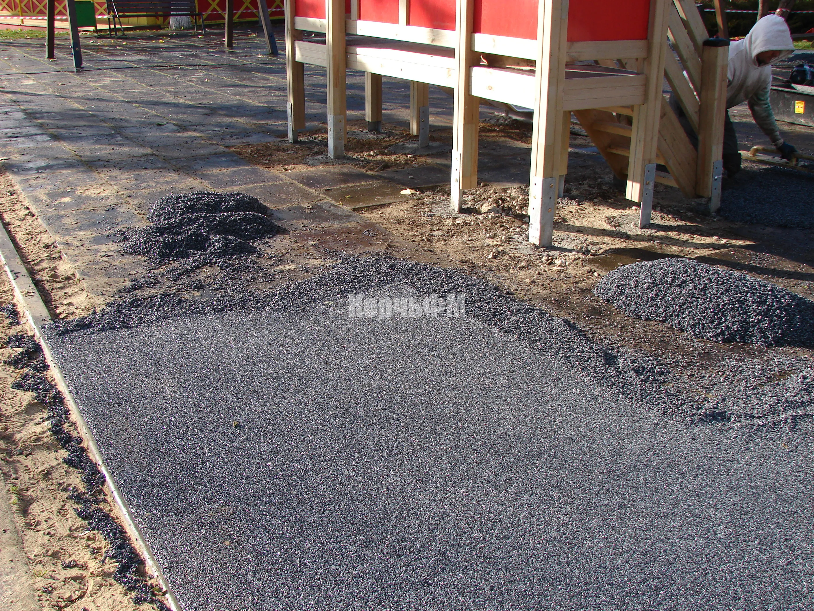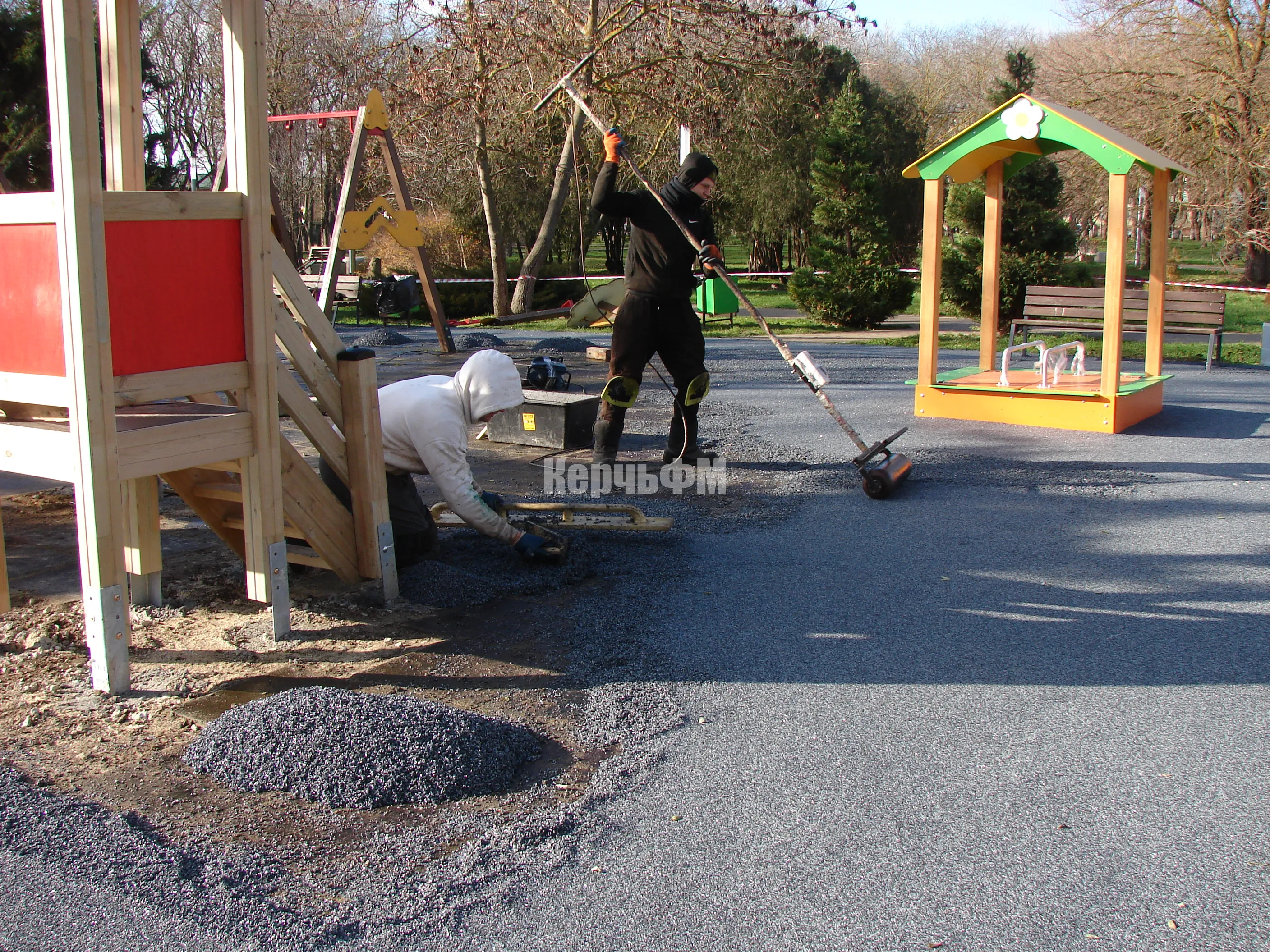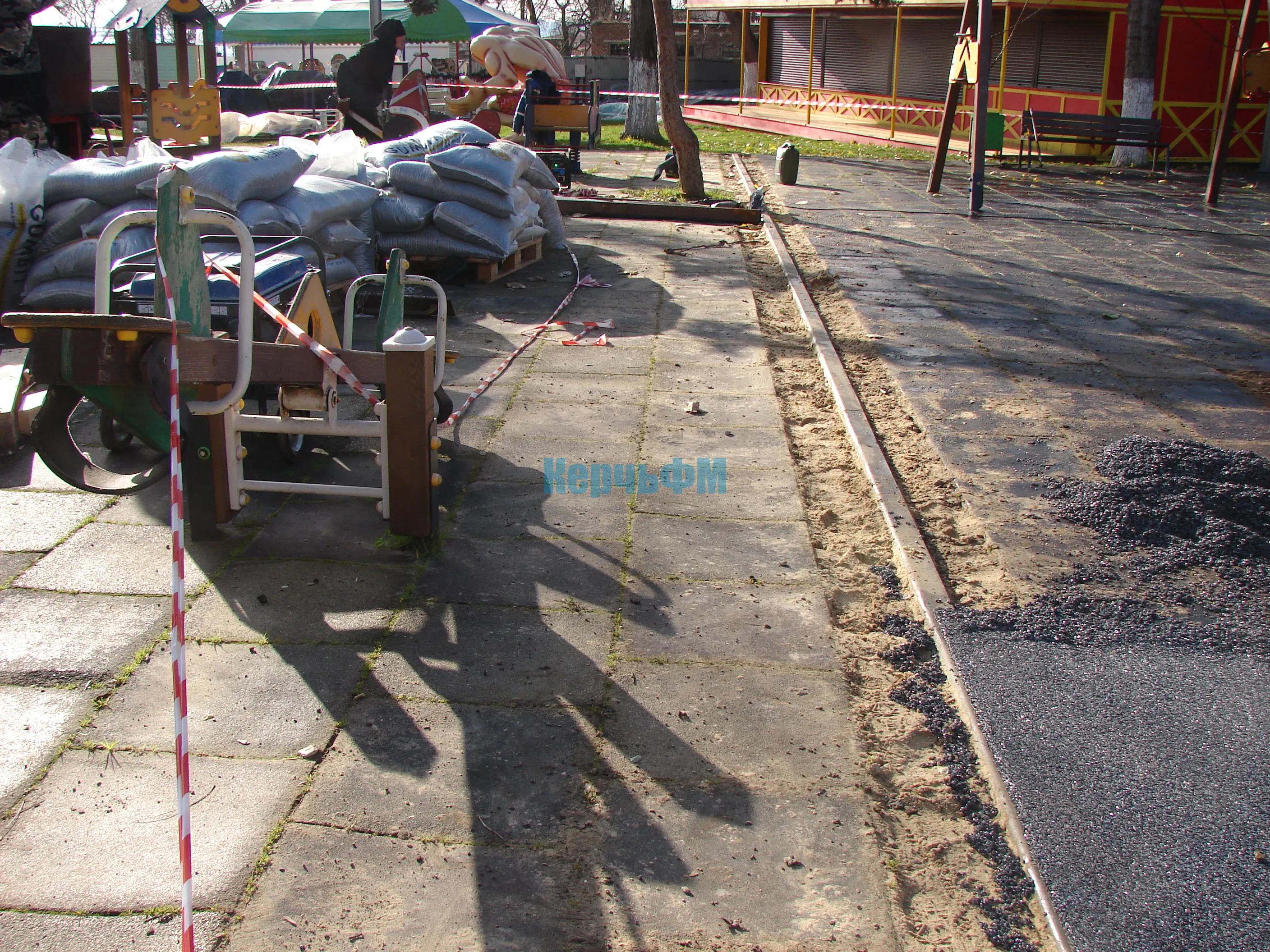 Сегодня на детских площадках ведется укладка нового резинового покрытия и, судя по приготовленным для этих целей материалам, работы еще много.