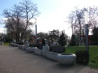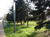 Комсомольский парк в предновогодние дни выглядит по-летнему зеленым.