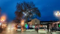 Главная зелёная красавица засияла тёплыми жёлтыми огоньками. В этом году ёлка выглядит особенно эффектно, всё выдержано в одной цветовой гамме, что делает её по-настоящему стильной и гармоничной. От неё невозможно оторвать глаз: так и хочется стоять и просто любоваться этой красотой.
