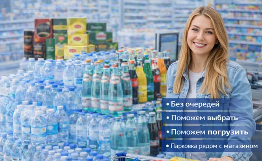 Отдельное внимание - воде. У нас вы можете сразу сделать запас воды в больших 19-литровых бутылях, в нужном количестве для дома, офиса или праздников. Всё в наличии, без ожидания и лишней беготни по разным точкам.