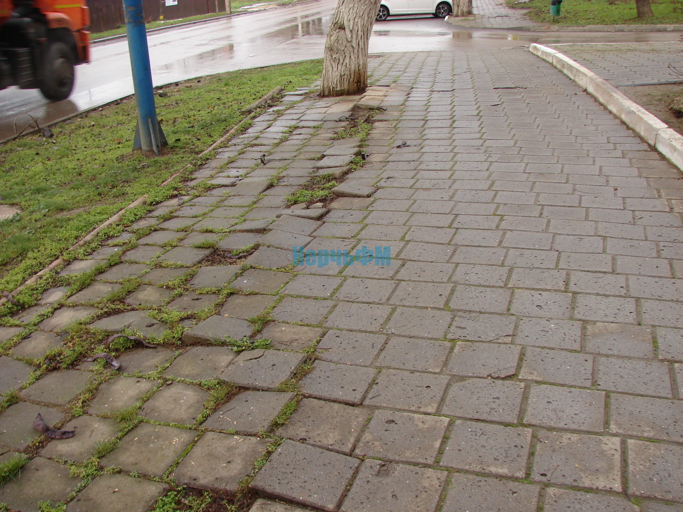 Тротуар вдоль дома по Кирова, 111 в Керчи: сплошные провалы