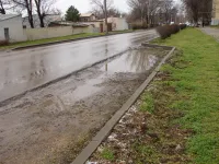 Была она сделана и у дома по Кирова, 111, только не до конца заасфальтирована. Сегодня там лужи и грязь.