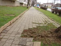 Часть деревьев, растущих рядом с тротуаром и непосредственно на нем, удалили.