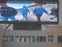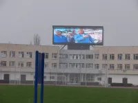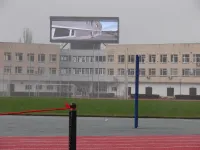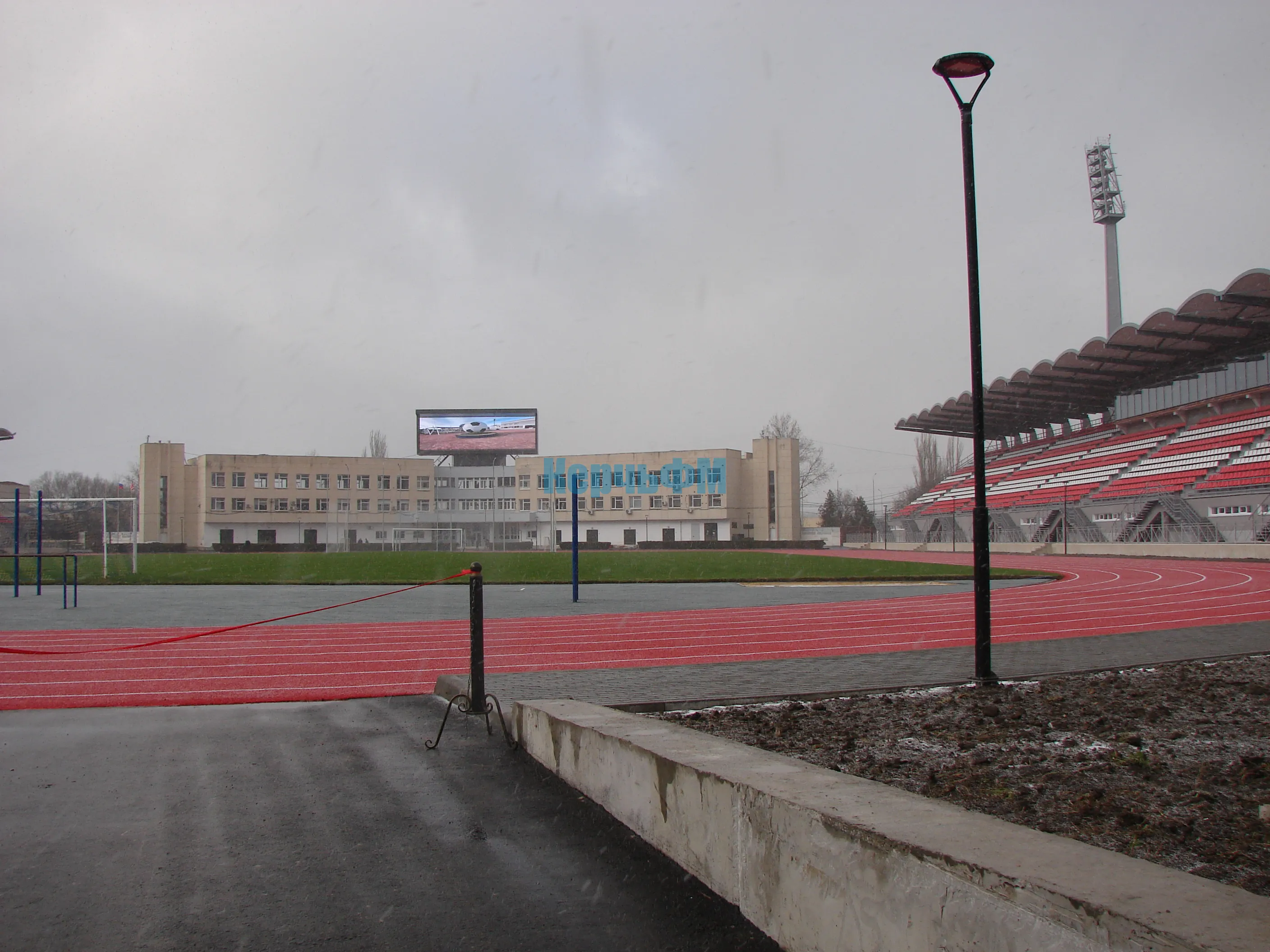 Восстановлено информационное табло. Выполнен ремонт вышек освещения стадиона с установкой новых прожекторов, проведены необходимые электротехнические работы, смонтировано освещение территории и беговых дорожек.