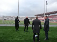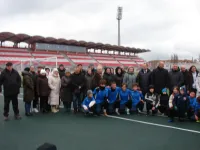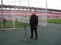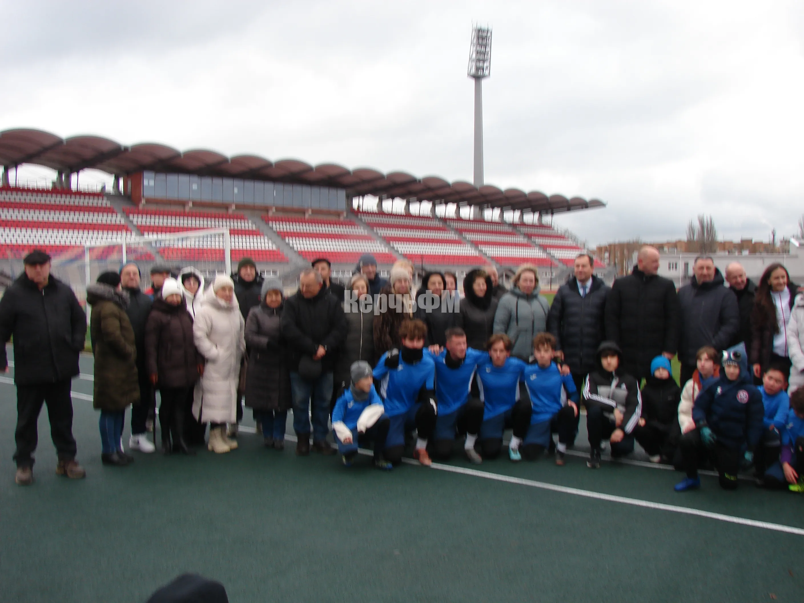 Затем руководители города прошли по стадиону и поиграли с юными футболистами на мини футбольном поле.