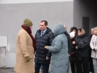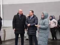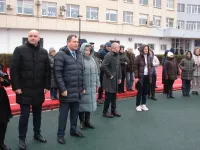 Красную ленту на главном входе перерезали глава администрации Олег Каторгин вместе с тренером по легкой атлетике ДЮКФП Аленой Гуцуляк - с одной стороны и глава муниципального образования Денис Колесник вместе с директором ДЮКФП Сергеем Есиным - с другой.
