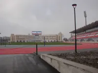 Проведен косметический ремонт Восточной, Западной и Южной трибун, обустроена входная группа с пандусом для маломобильных граждан на Западной трибуне. Выполнено мощение пешеходных зон и установка ограждений.