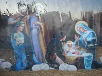 На центральной площади Керчи установили небольшую, укрытую от ветра и осадков, инсталляцию пещеры, где по Священному Писанию родился Иисус Христос.