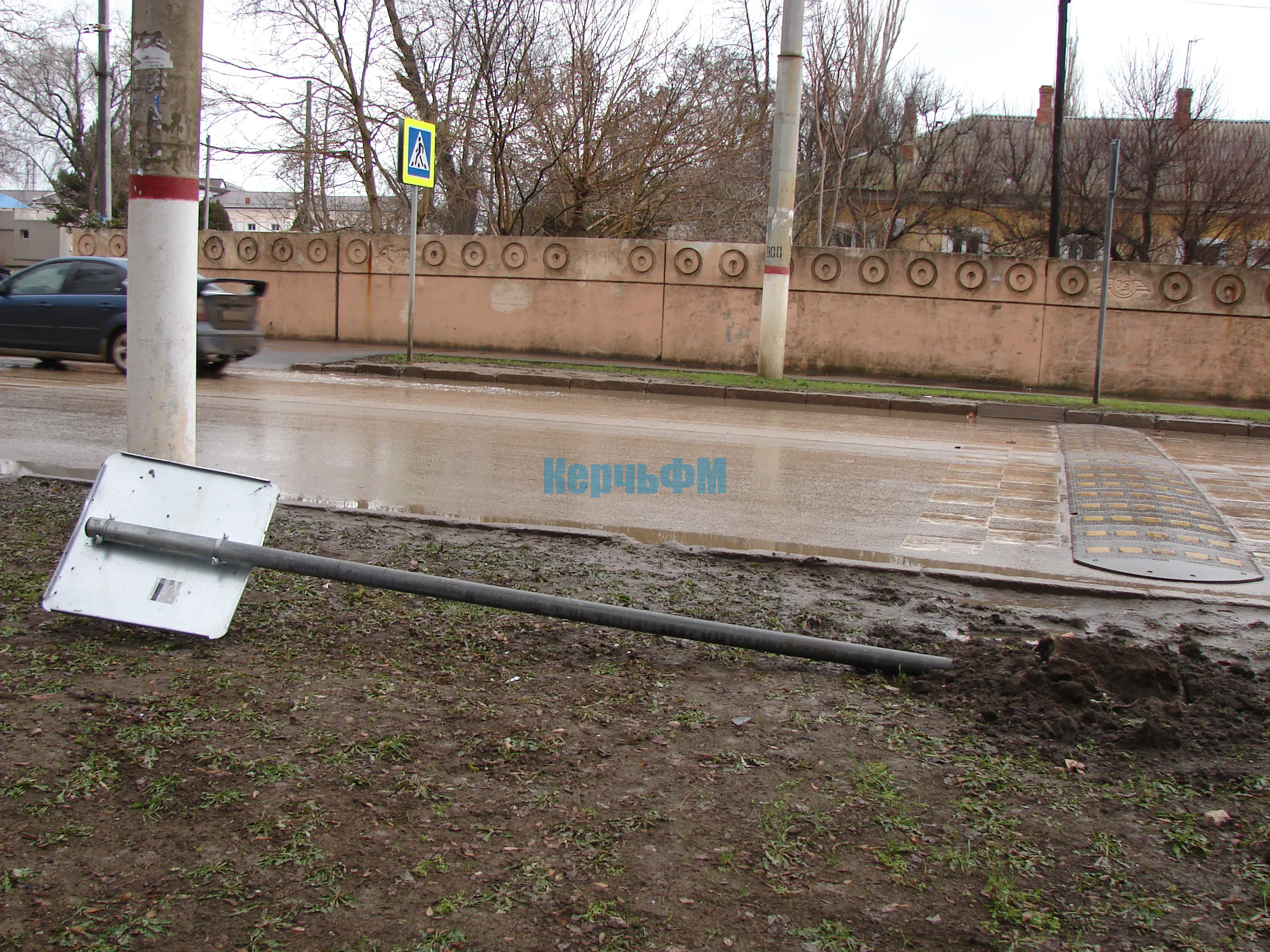 Знак лежит там, где должен стоять.