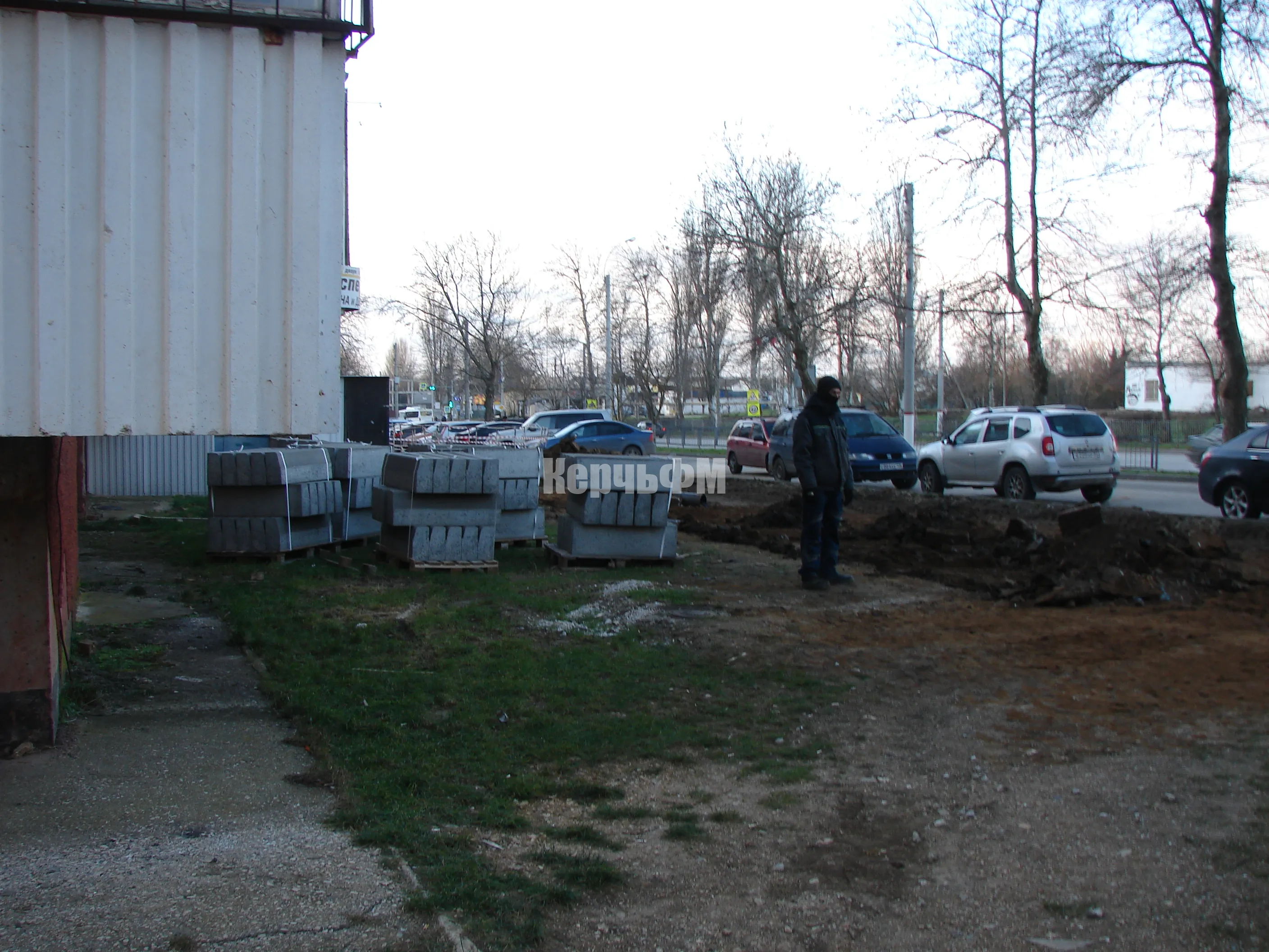 С лицевой стороны высотки по Генерала Петрова, 18 ведутся работы по частичному демонтажу тротуарной плитки.