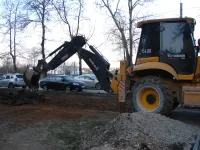 Над ее участком тяжелая техника проломила плиту.