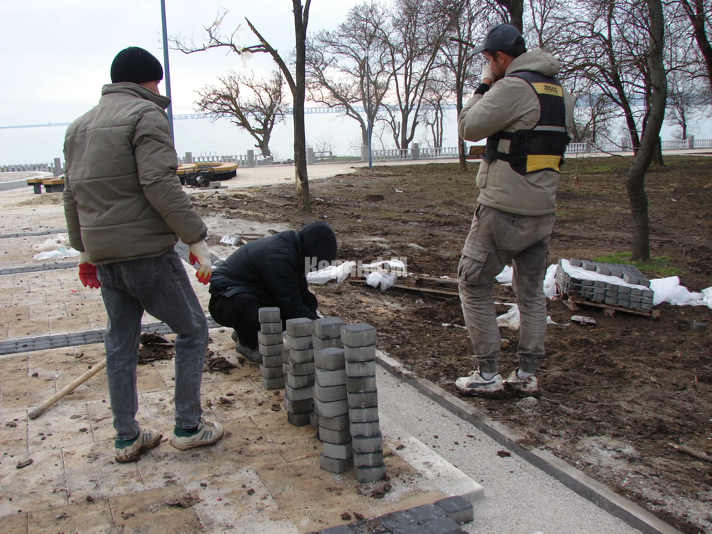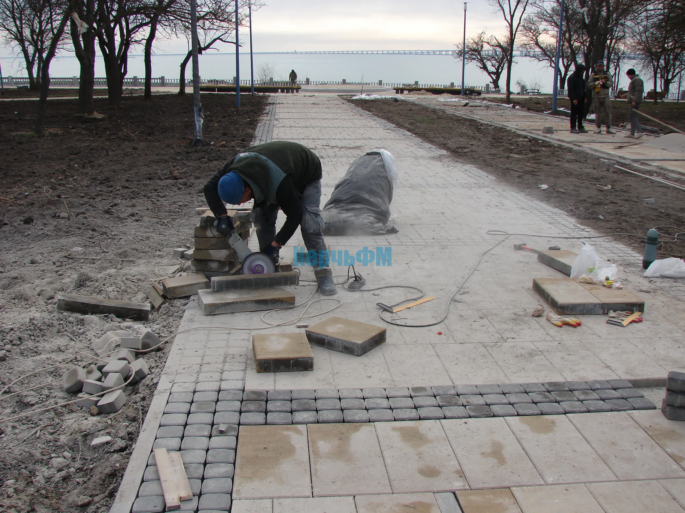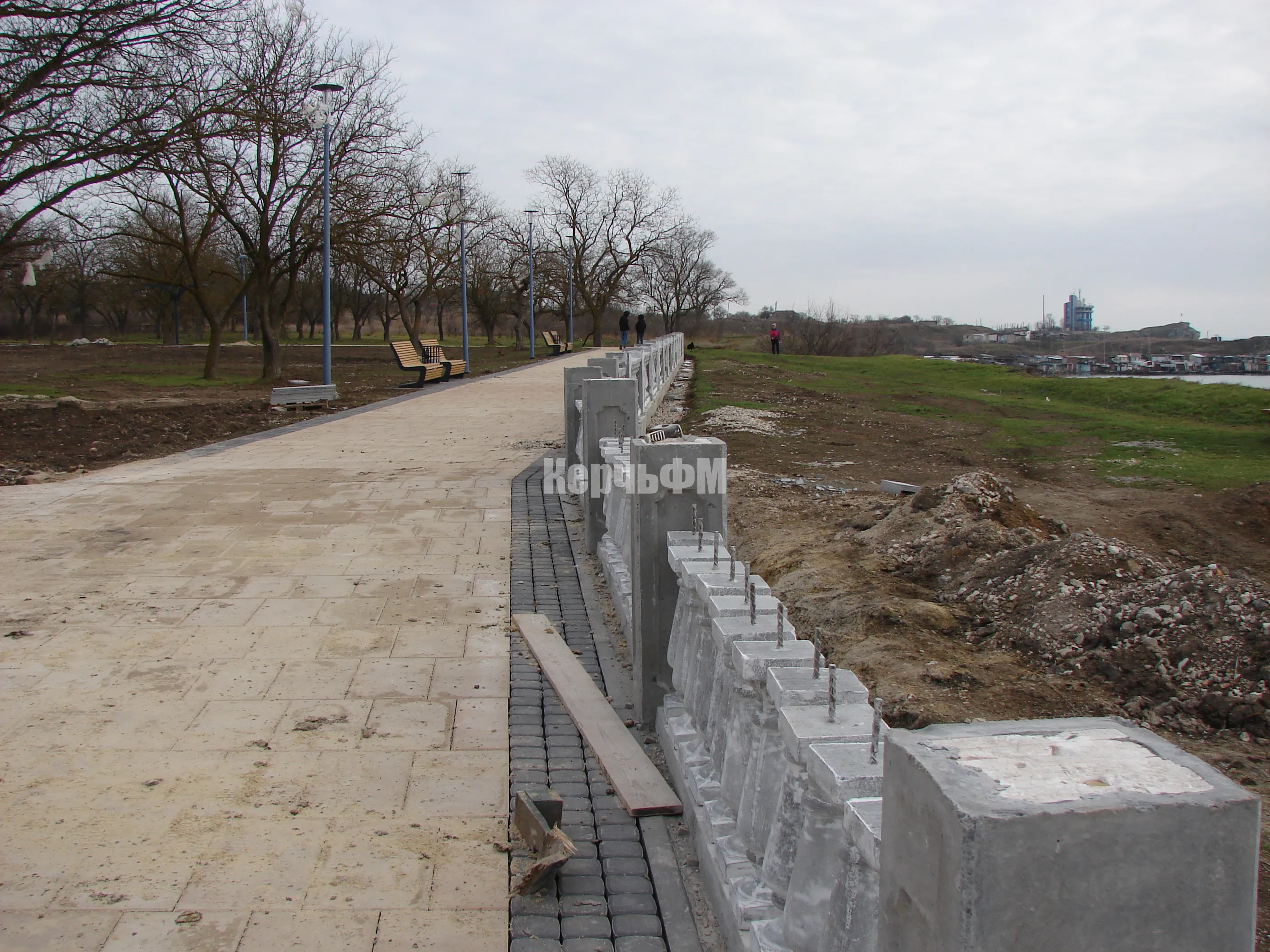 Есть еще несколько отрезков прогулочных дорожек, ожидающих укладки тротуарной плитки, передает КерчьФМ.