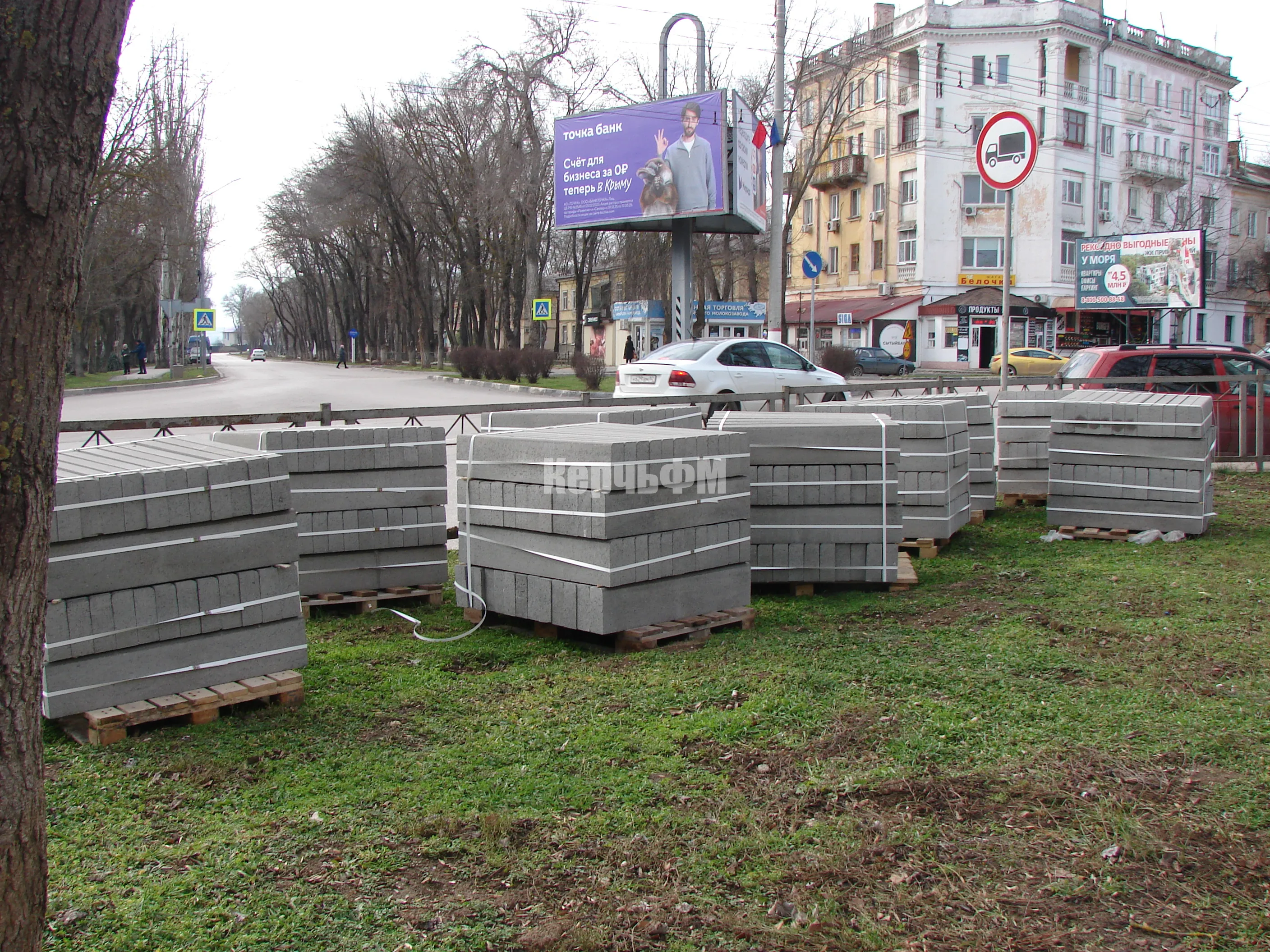 К Школе искусств им. Р. Сердюка в Керчи завезли бордюрный камень