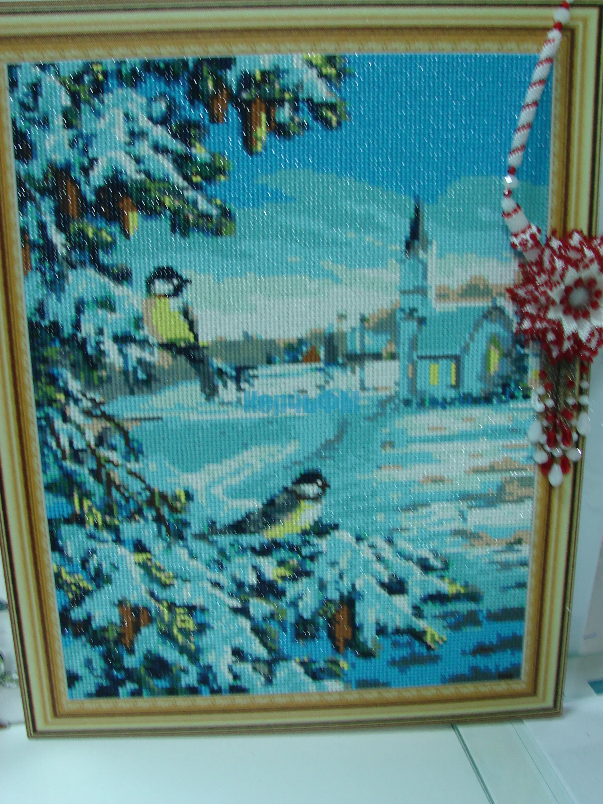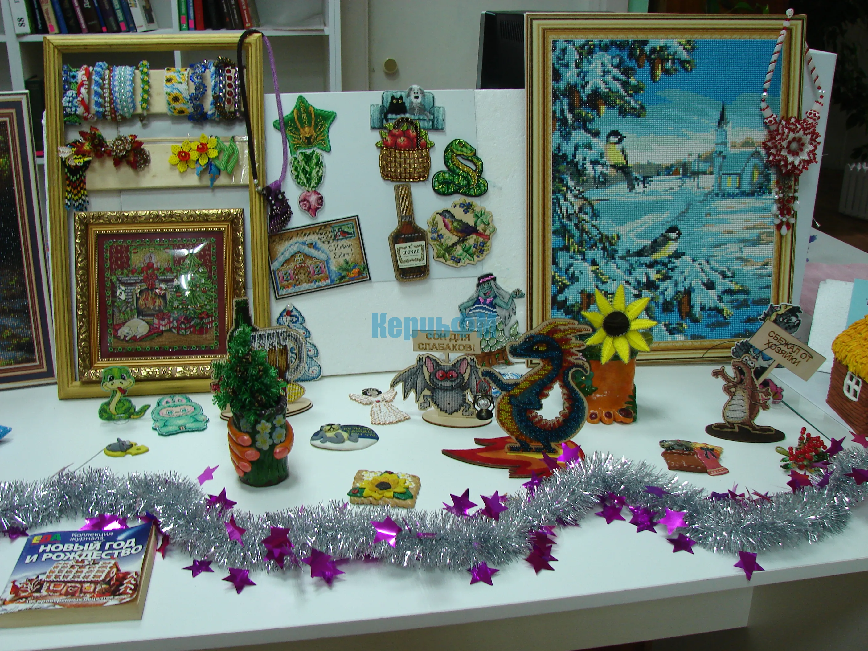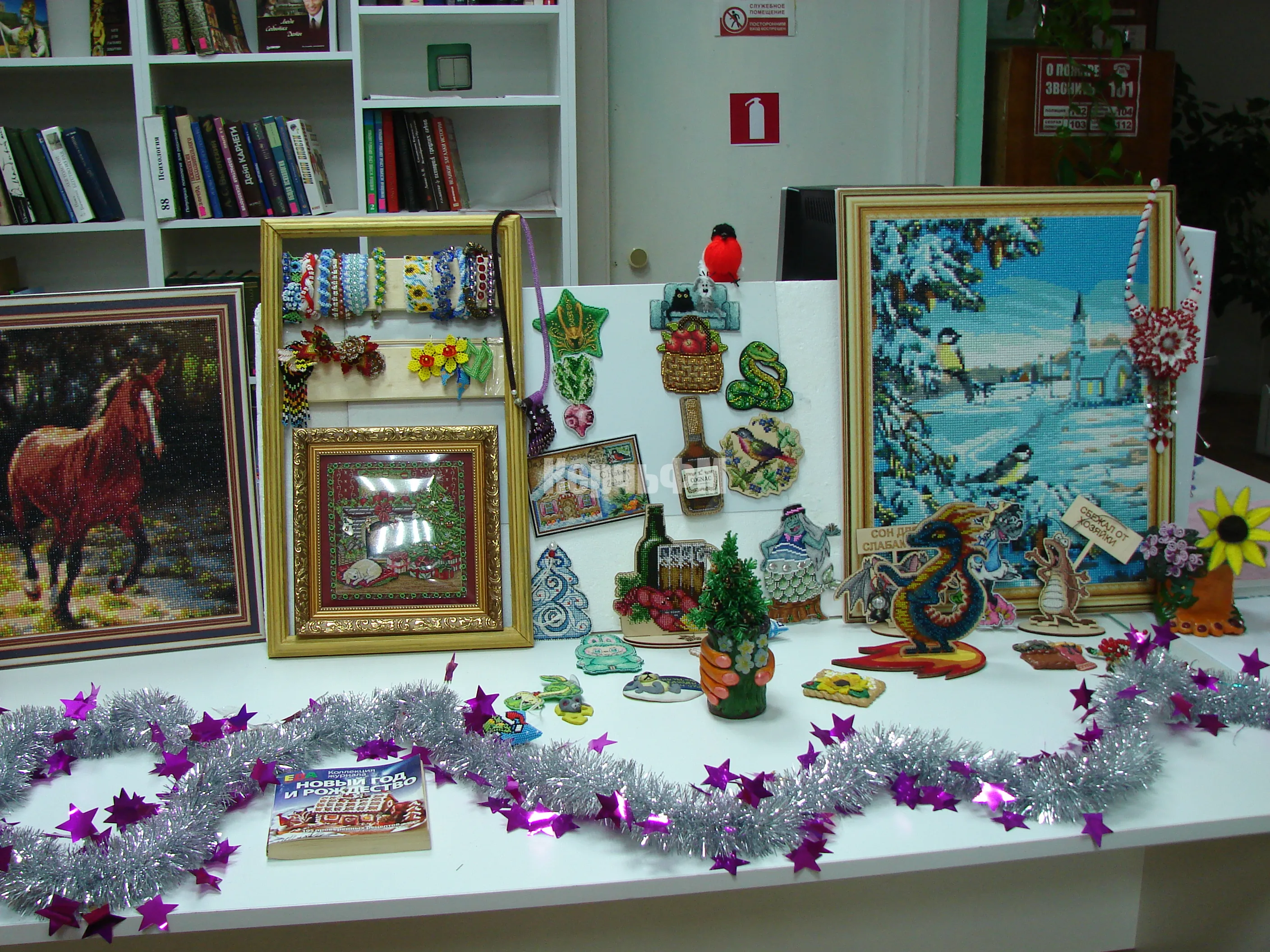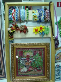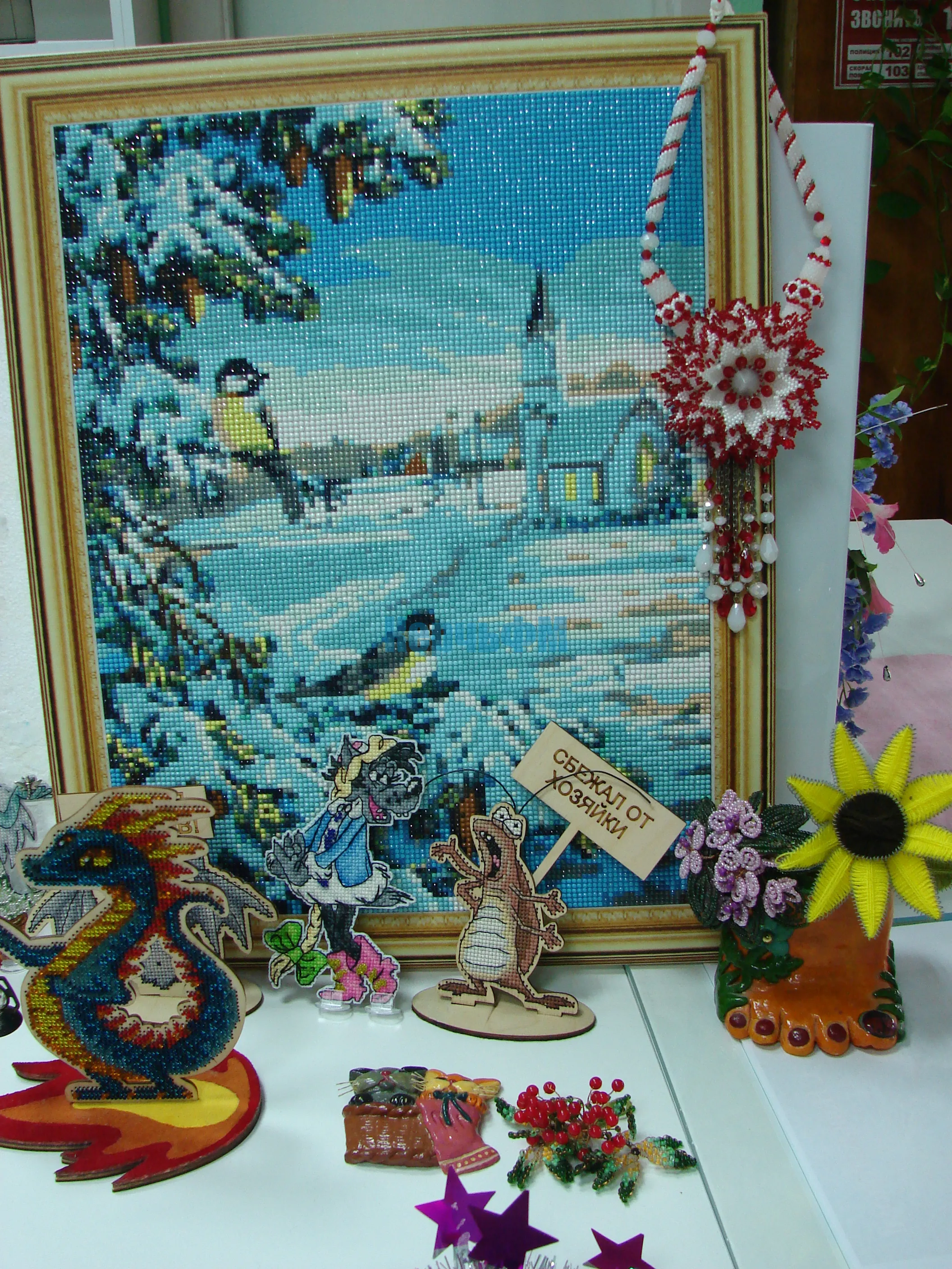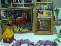 Постоянная читательница Анна Рацун представила библиотеке свои творческие работы, выполненные вышивкой бисером, и назвала свою выставку "Зимние мотивы".