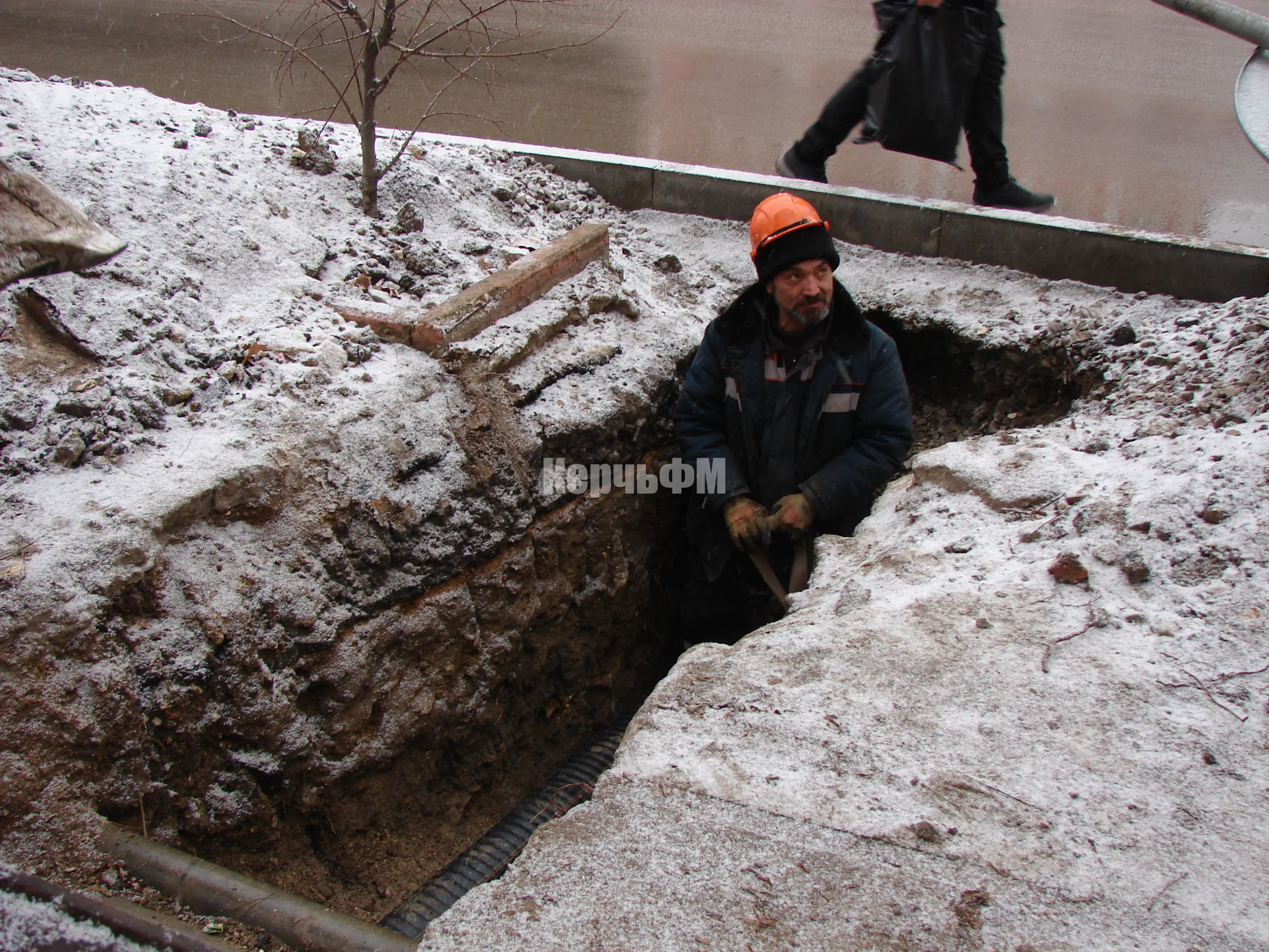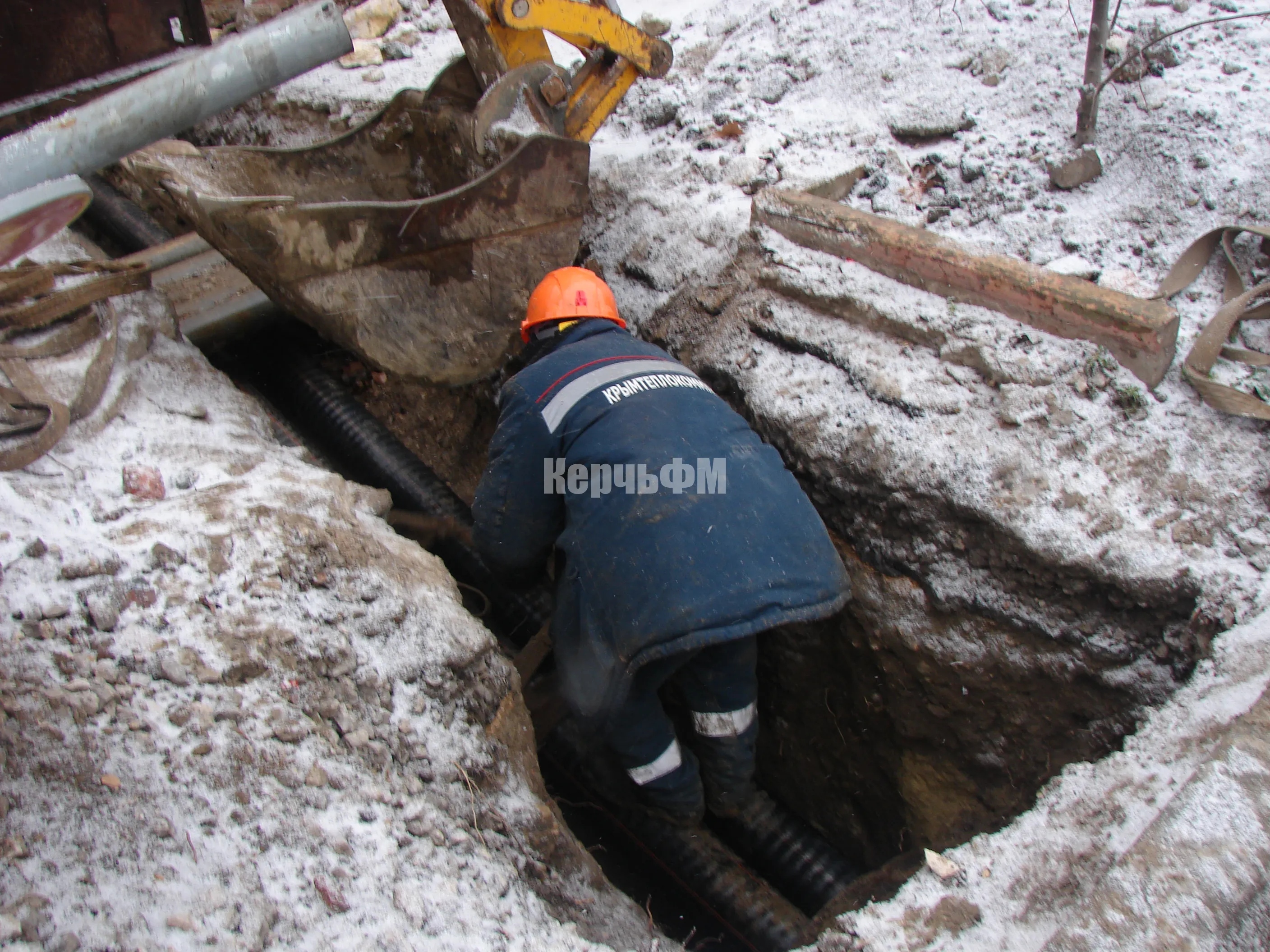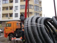 Сегодня специалисты керченского филиала предприятия "Крымтеплокоммунэнерго" тянут две трубы под автомагистралью улицы Свердлова к поликлинике.