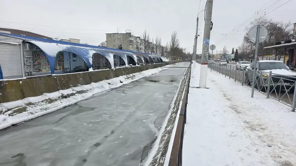 В Керчи речка Мелек-Чесме покрылась льдом. В городе уже несколько дней подряд держится минусовая температура. Сегодня, 19 января, столбики термометров показывают около -4 градусов, что способствует образованию ледяного покрова, - передает КерчьФМ.