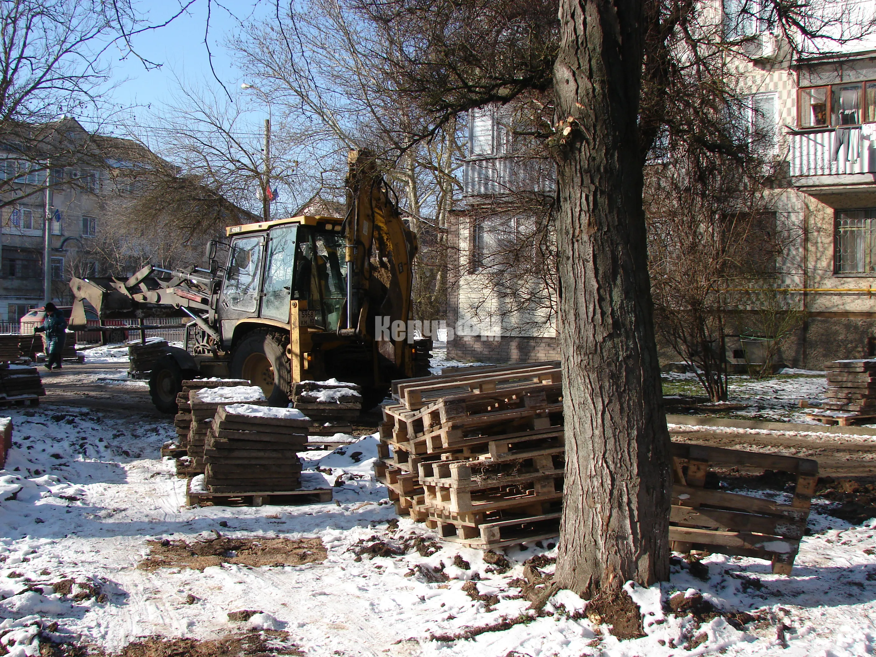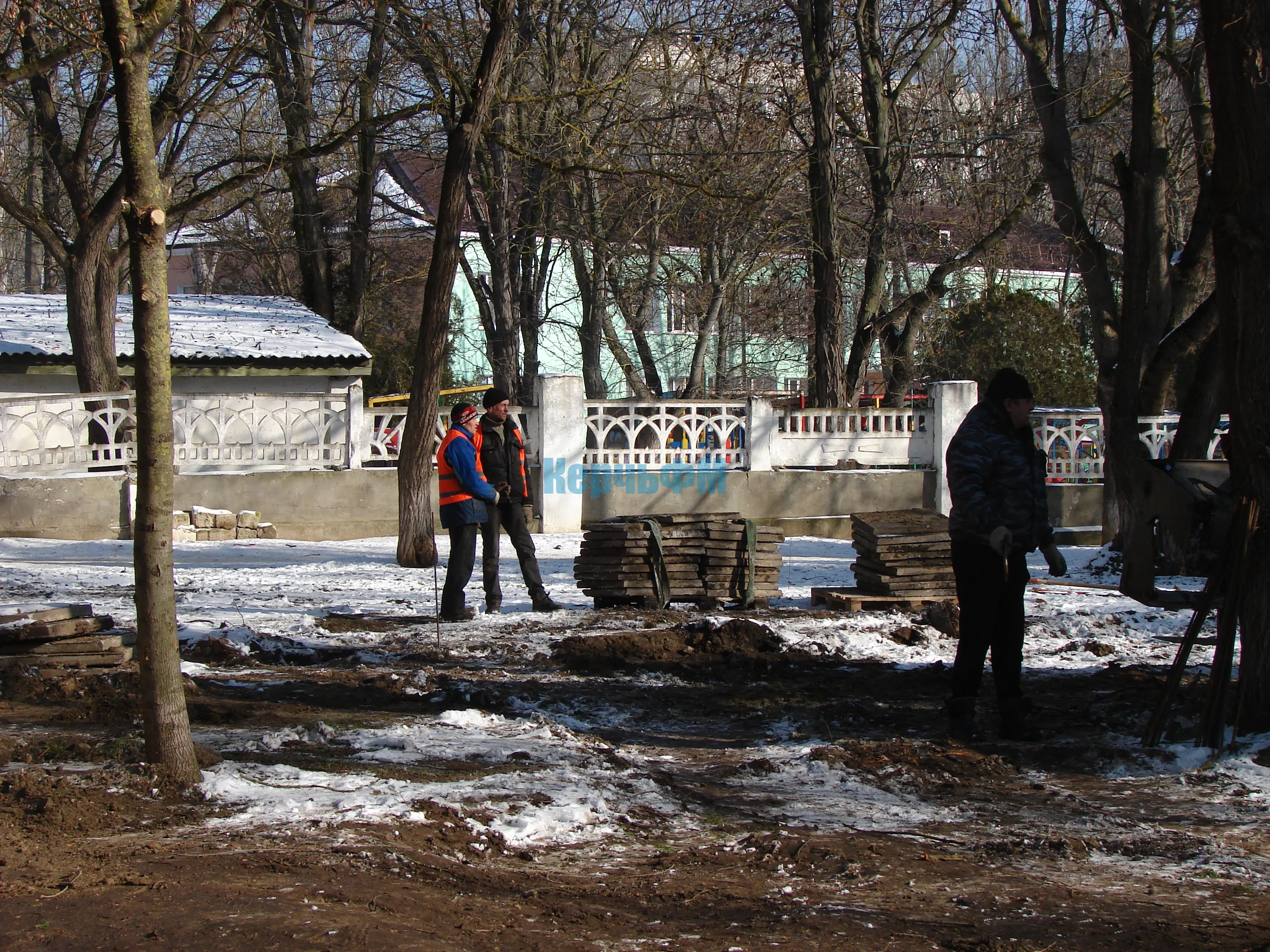 Как уже сообщал в своей новостной ленте КерчьФМ, у Школы искусств им. Р. Сердюка начались и продолжаются в любую погоду работы по демонтажу тротуарных старых плит.