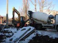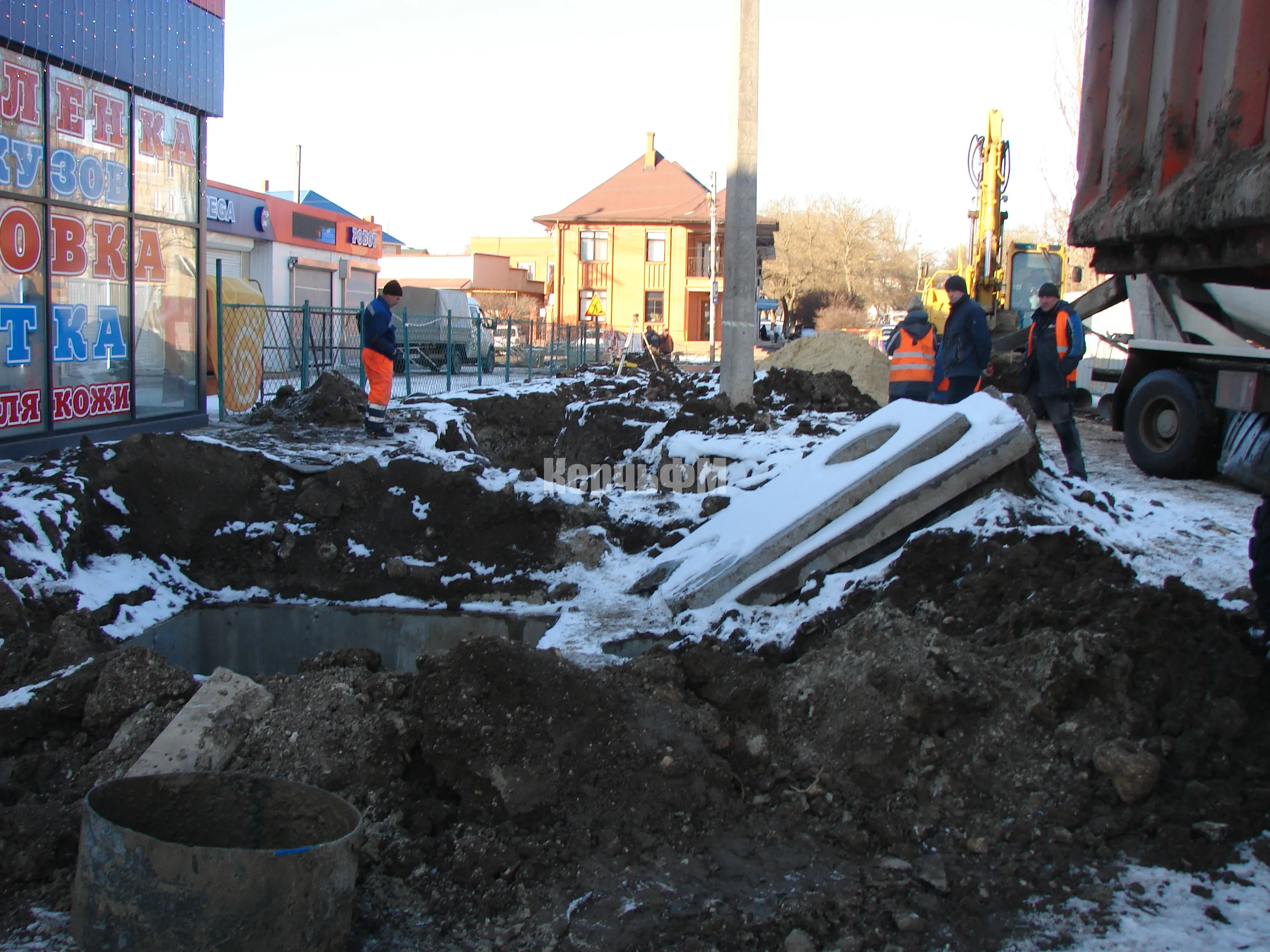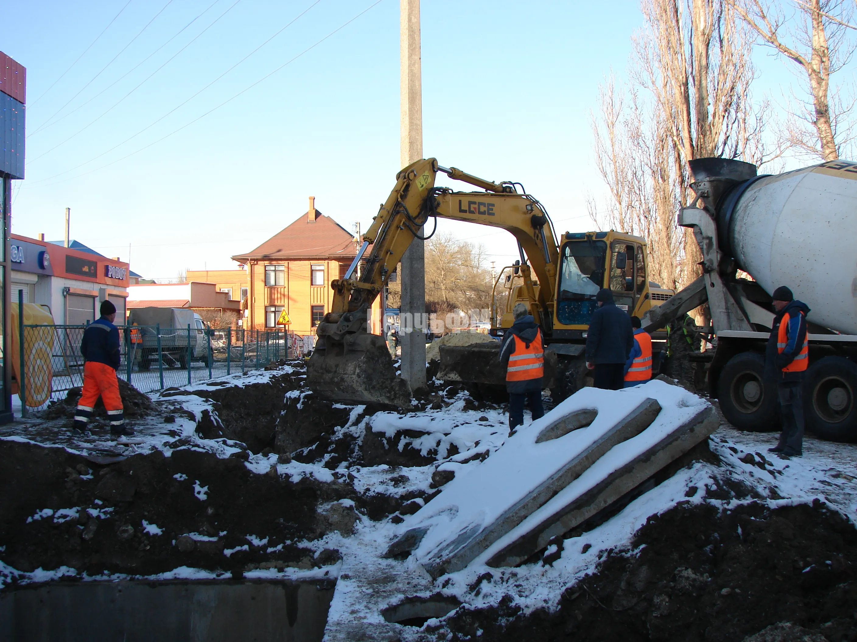 Трубы нового водовода диаметром 200мм и 700мм в основной своей части уже уложены в грунт и по Мирошника, и по Полевой.
