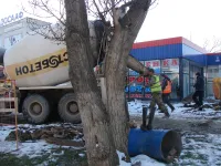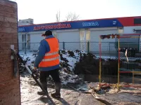 Сегодня продолжаются работы по укладке труб в районе перекрестка этих улиц, где, согласно техническому плану, будет произведено их смыкание.