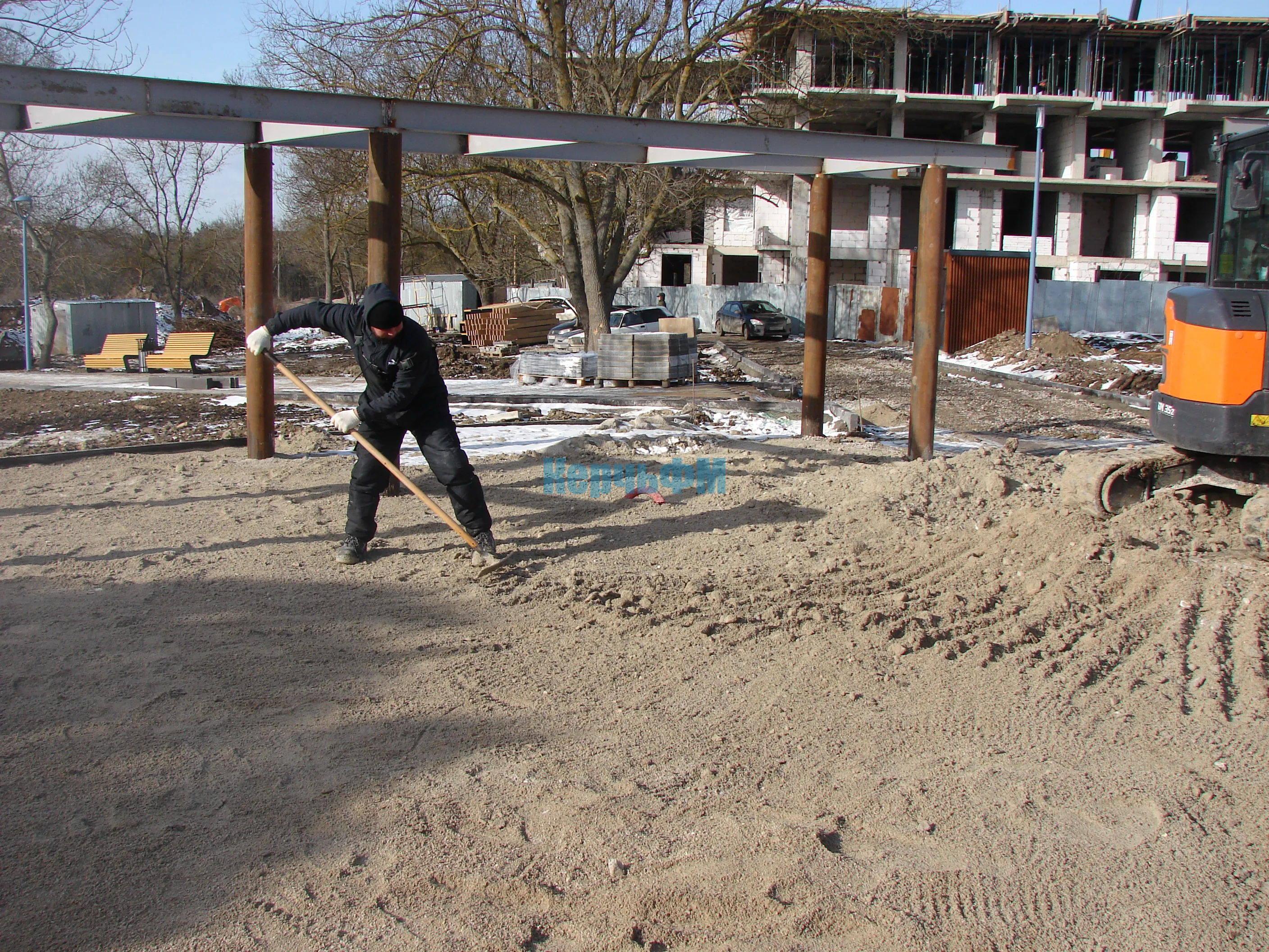 Сегодня подмерзшая земля при повышении температуры воздуха продолжает оттаивать, и у рабочих появилась возможность активировать свою работу на новых пешеходных зонах и дорожках, передает КерчьФМ.