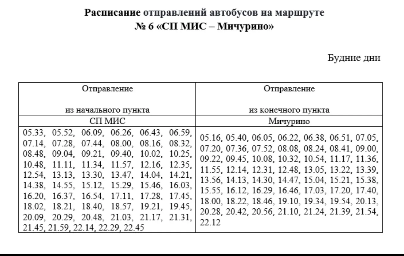 В Керчи с 26 января в ТЕСТОВОМ режиме будет изменено расписание движения автобусов в будние дни на муниципальном маршруте регулярных перевозок №6 «СП МИС - Мичурино» (в утренние часы). Об этом сообщает пресс-служба администрации, - передает КерчьФМ.