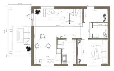 В доме 4 спальни, кухня-гостиная, 2 санузла.