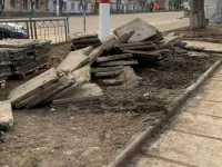 Строители перешли ко второму этапу демонтажа и сегодня в работе - площадь перед Школой.