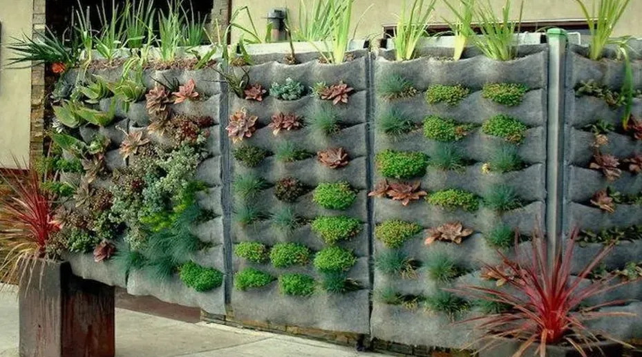 •    Как сделать: Сшейте или купите готовые кармашки разного размера, закрепите их в шахматном порядке на основе. Растения высаживаются в кармашки прямо в субстрате.