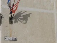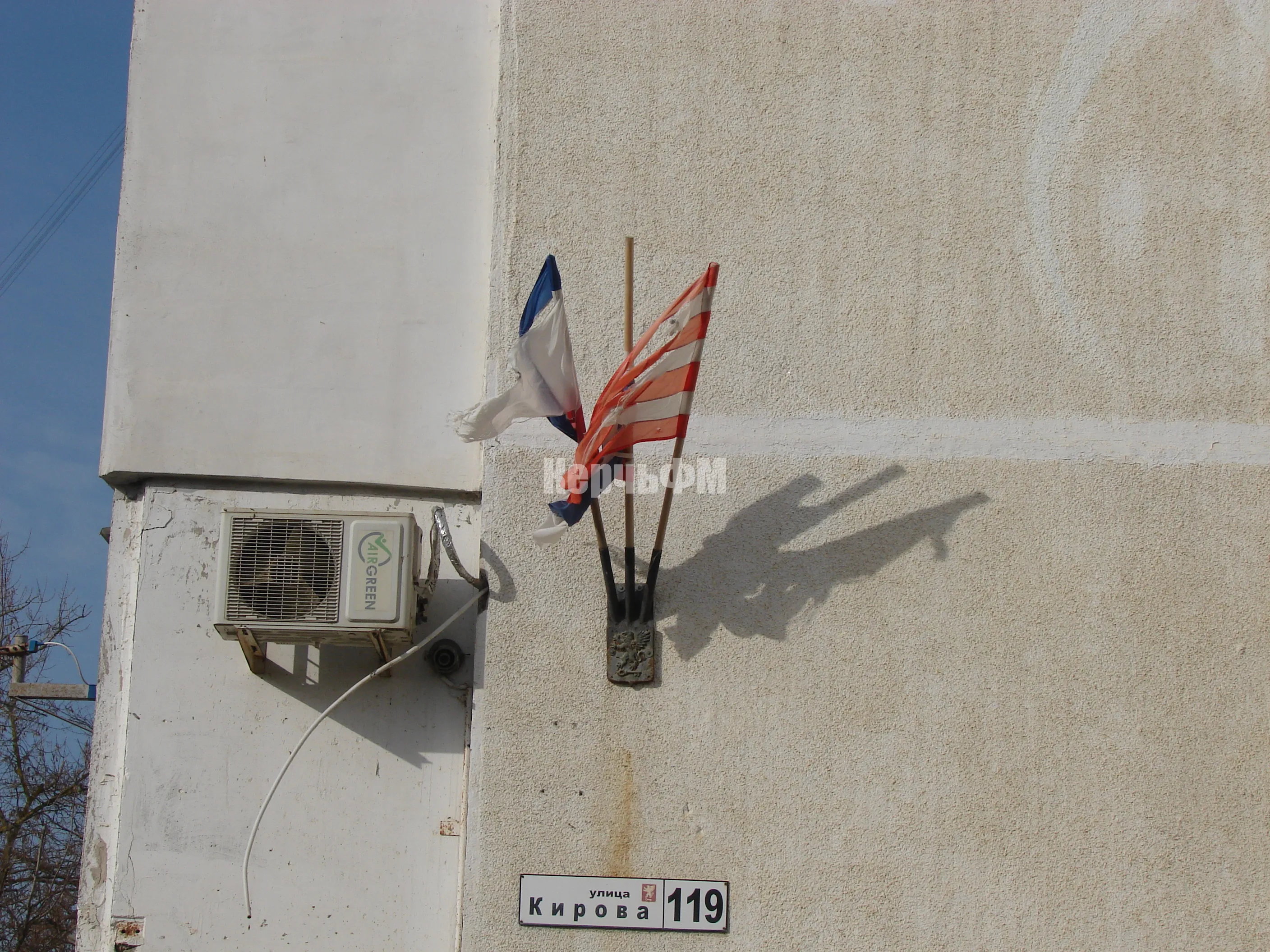 Ветер повредил флаги на доме по Кирова, 119