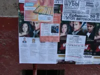 Так всё очень просто ! У нас в стране ведь все равны перед Законом !(?) Кто там фигурирует на этих бумажках ? Каторгин , Кришталь , Иванова , Миронов ? Выяснить место работы , оштрафовать за незаконные действия , вычесть из зарплаты , чтобы другим неповадно было пачкать подъезды , столбы , стены...А то понимаешь ли...так дойдёт до того , что рекламу о продаже шуб , мёда , ремонт холодильников будут клеить где ни попадя .