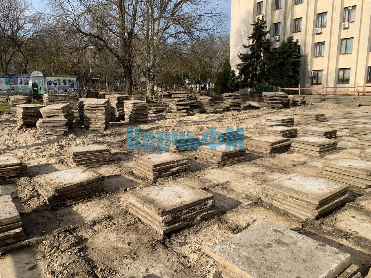 Как рассказали КерчьФМ рабочие подрядчика, демонтаж продолжится после того, как на освобожденные пространства будет уложена новая тротуарная плитка.