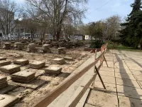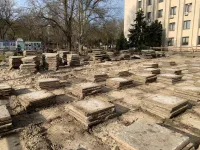 Демонтаж старых плит дошел в начале текущей недели до площади перед центральным входом в здание.